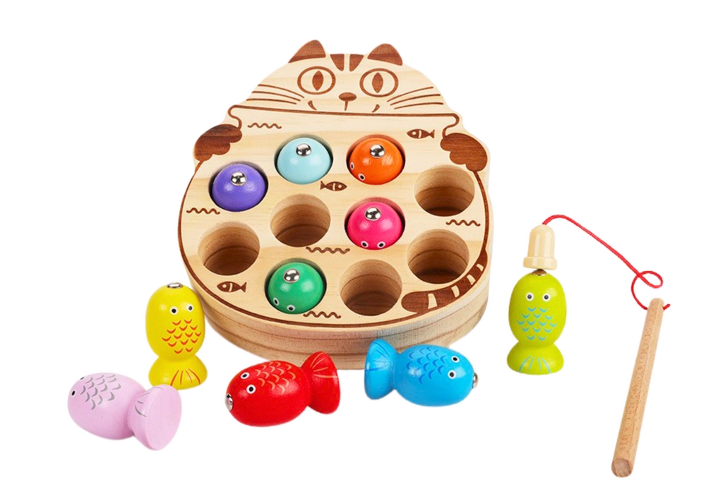 Ienirstiet izklaides pasaulē ar koka makšķerēšanas spēli, kas uzlabo bērnu koordināciju un smalko motoriku. Šī spēle ir ideāla visai ģimenei un sniedz daudz prieka un smieklu.