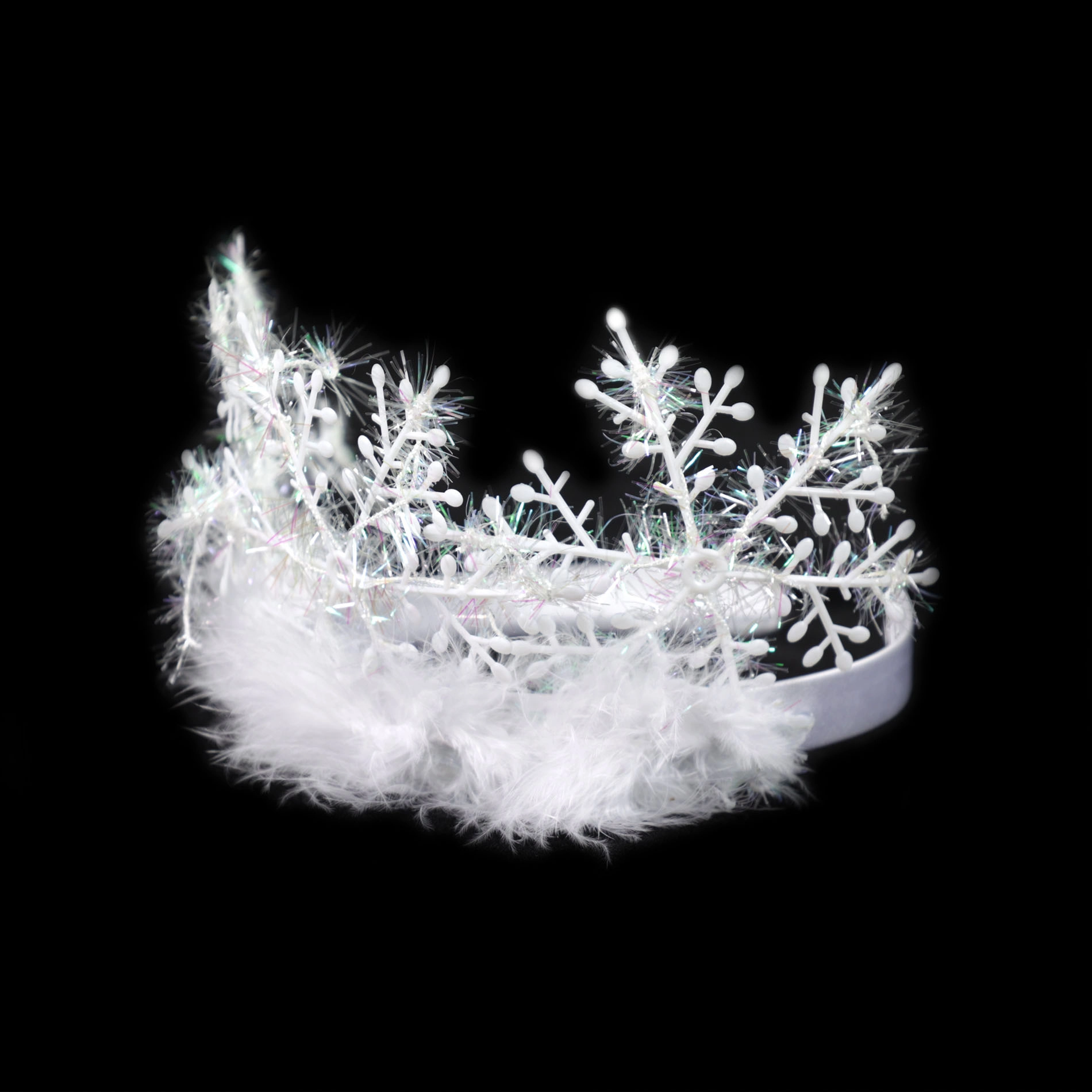Šis apburošais kronītis ir perfekts veids, kā pabeigt mazās princeses vai ziemas karalienes tērpu. Pateicoties savam oriģinālajam dizainam ar izstrādātām sniegpārsliņām un maigu spalvu rotājumu, kronītis piesaista uzmanību jau no pirmā acu uzmetiena.