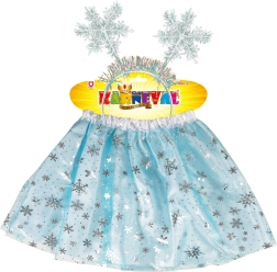 Šis brīnišķīgais bērnu kostīms zilā krāsā ar sniega motīviem ir lieliska izvēle svinībām un masku ballēm. Tas ir radīts, lai būtu ērti valkājams un izskatītos lieliski uz jebkuras meitenītes.