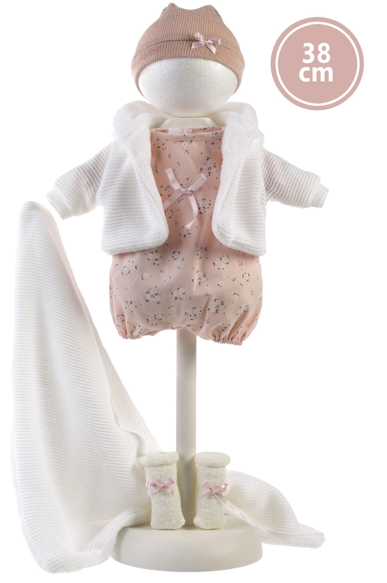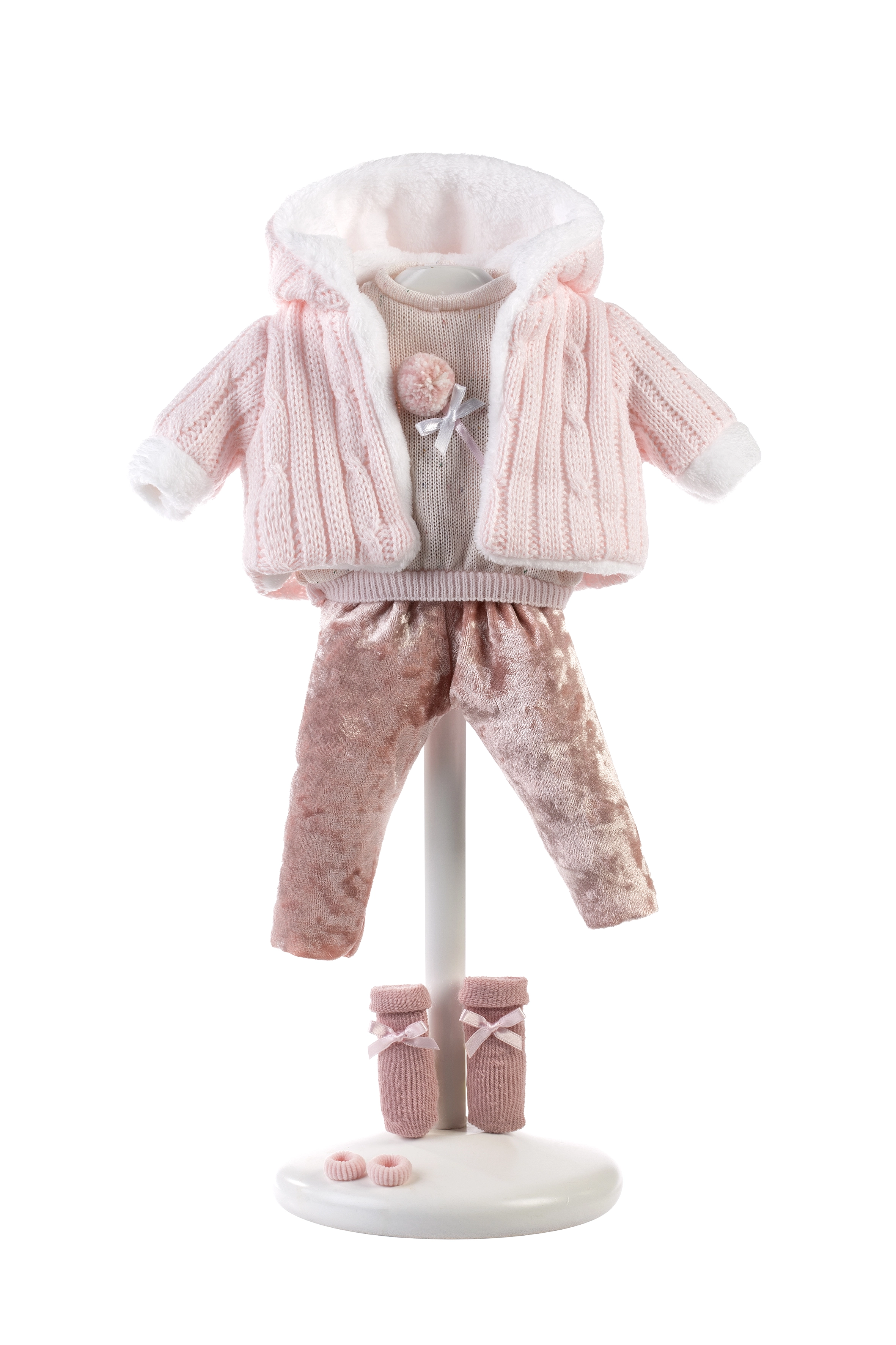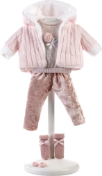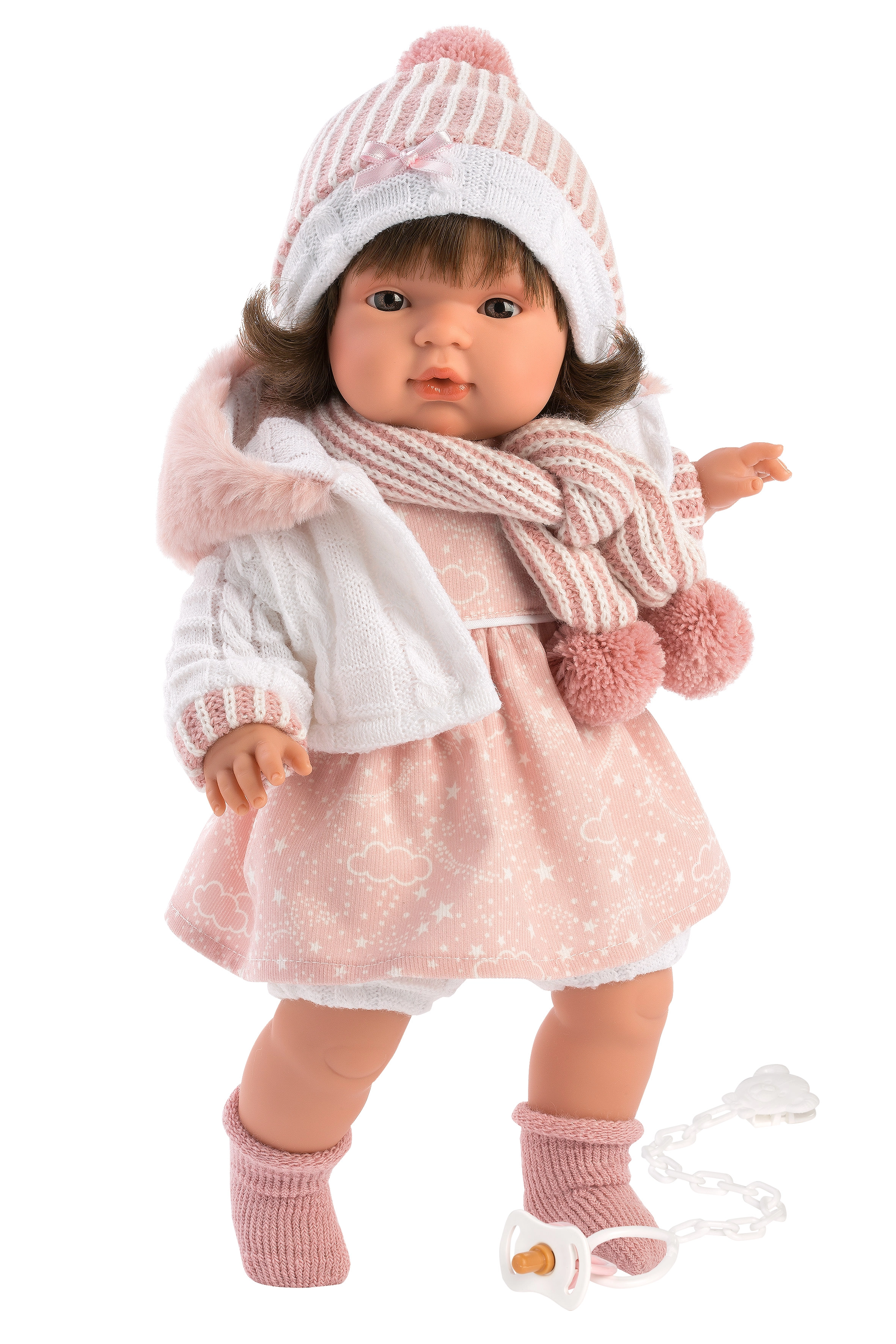 Galva un locekļi ir izgatavoti no kvalitatīva mīkstināta vinila. Izņemot knupīti, jūs dzirdēsiet frāzes “mamma” un “tētis” kopā ar reālistisku raudāšanu, ko var nomierināt ar magnētisko knupīti. Šis modelis ir bez apģērba – ideāli kombinējams ar oriģinālo Llorens apģērbu šī izmēra lellēm. Lelle ir iepakota plastmasas iepakojumā. Iepakojumā iekļautas baterijas 3 x pogveida LR44 ar to nomaiņas instrukciju.