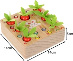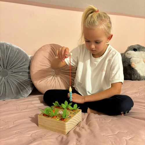Saskaņā ar Montessori principiem bērni var iejusties radoša dārznieka lomā un rotaļīgi apgūt, kā stādīt un novākt burkānus vai spēlēties ar magnētisko makšķeri. Šis produkts ir ideāli piemērots bērnu iztēles un radošuma attīstīšanai.