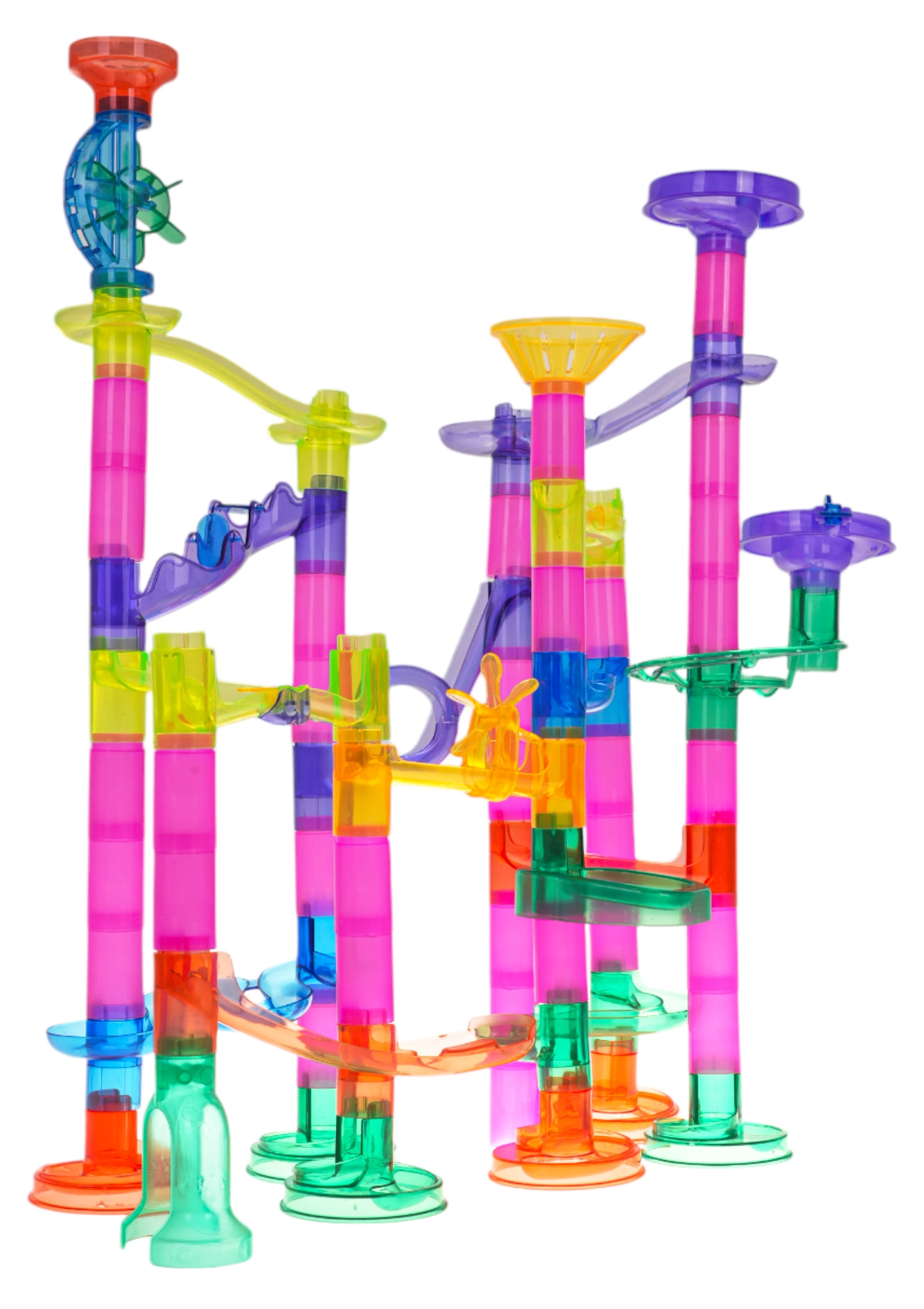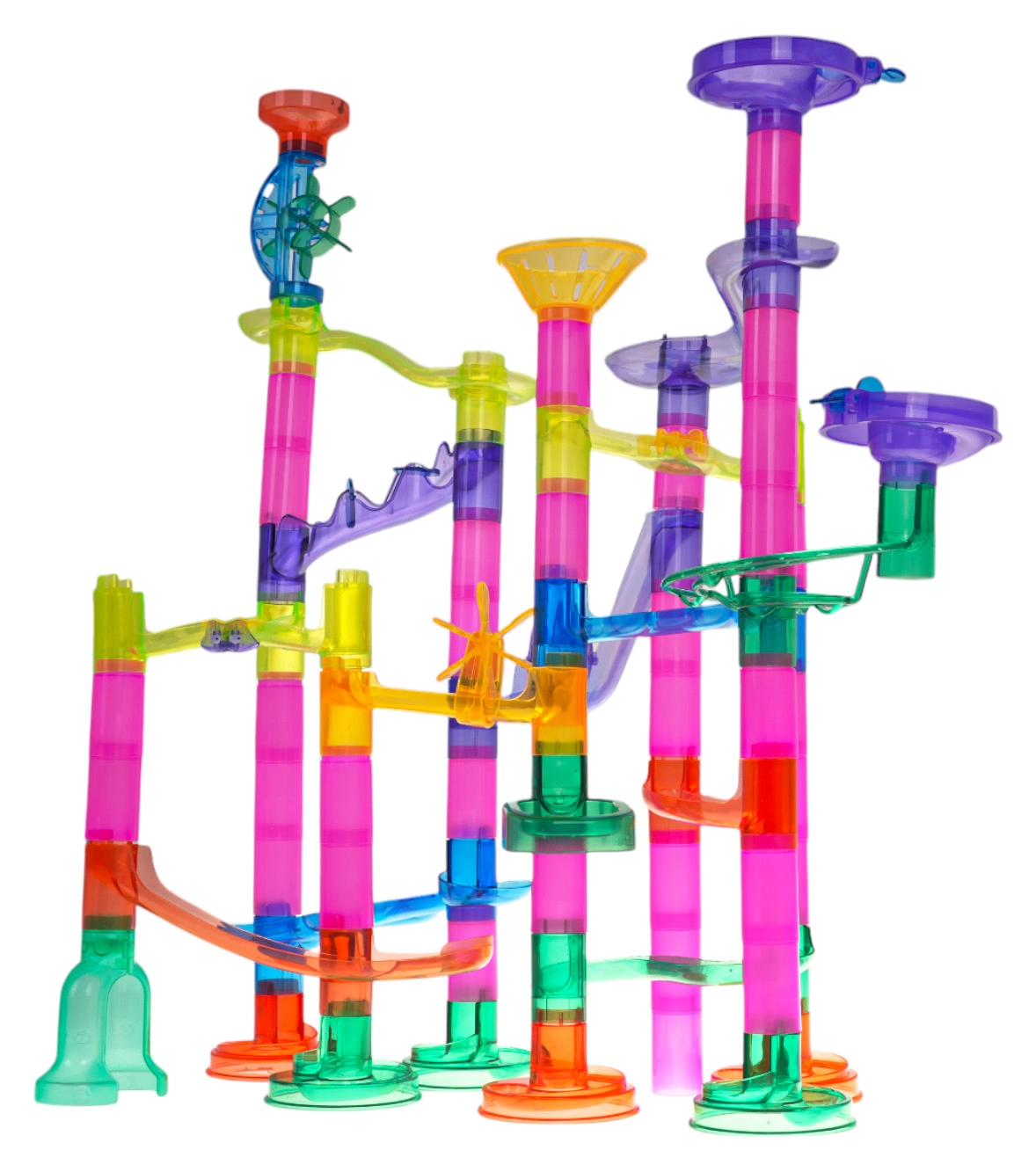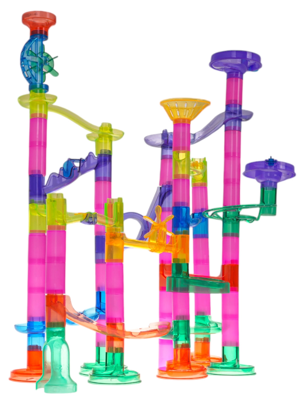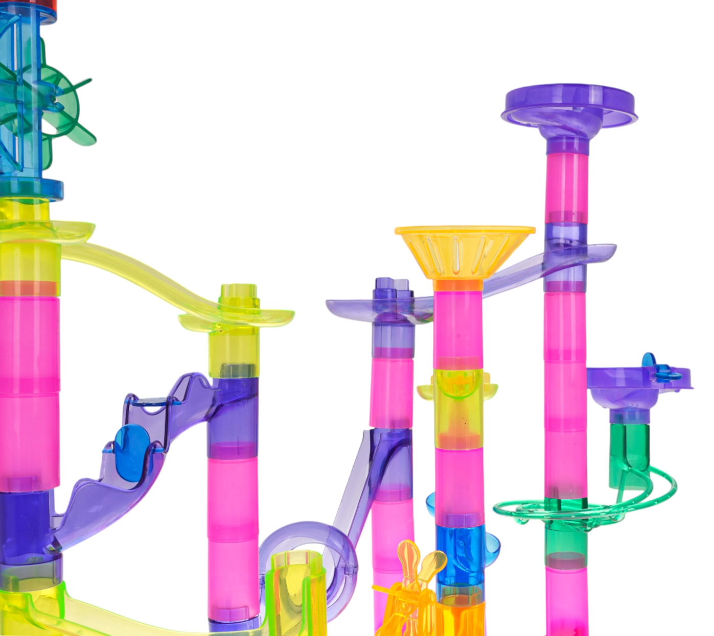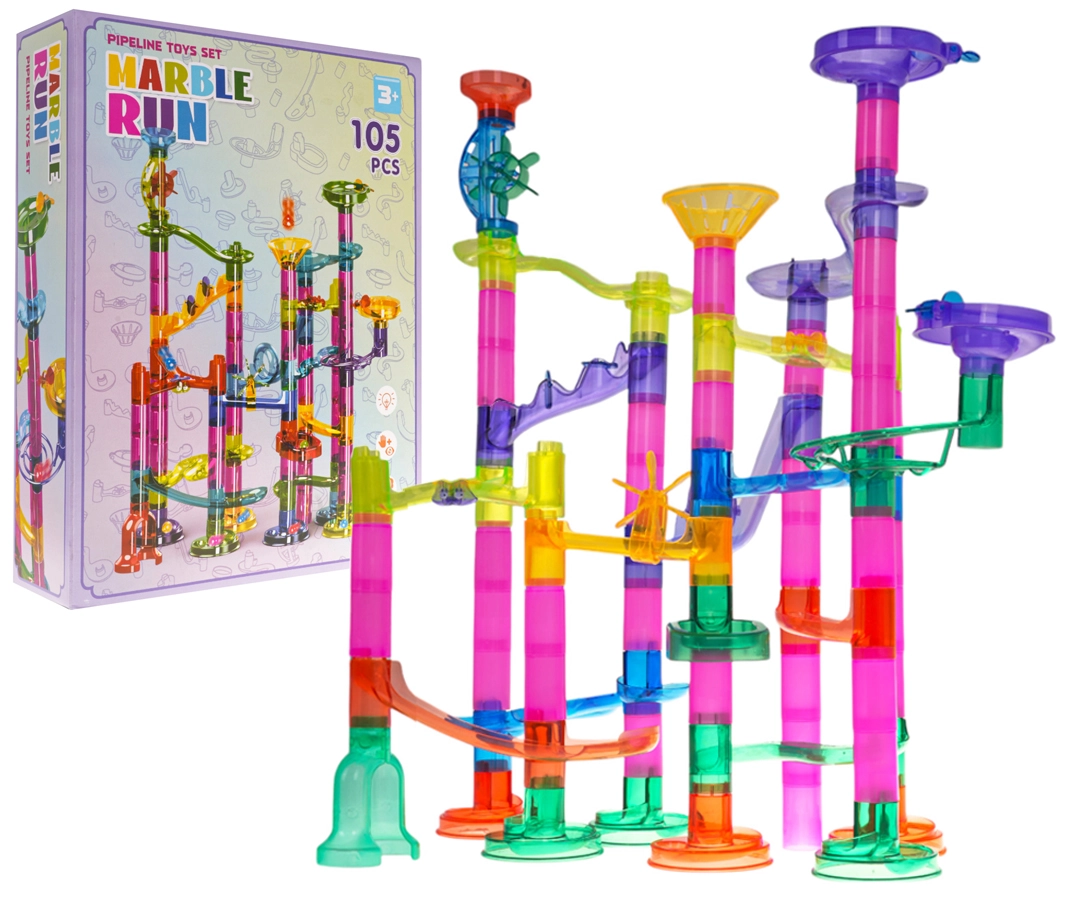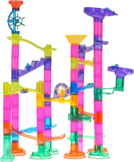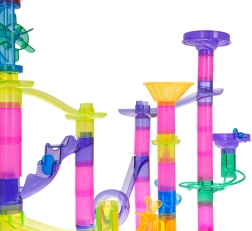 Krāsainā un stabilā bumbiņu trase no caurspīdīgām detaļām bērniem sniedz prieku atklāt kustību, gravitāciju un cēloņsakarības. Bērni paši projektē un būvē konstrukcijas, pēc tam vēro, kā bumbiņas traucas caur tuneļiem, spirālēm un piltuvēm. Ar baterijām darbināmās mirgojošās bumbiņas piešķir katram braucienam iespaidīgus gaismas efektus.