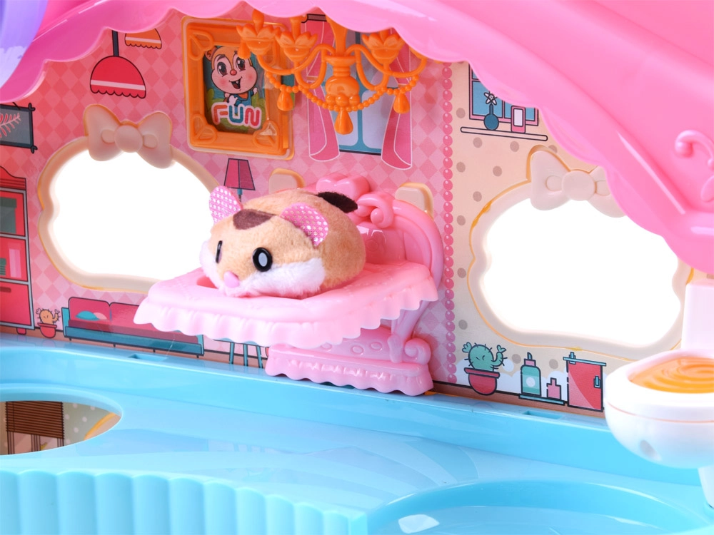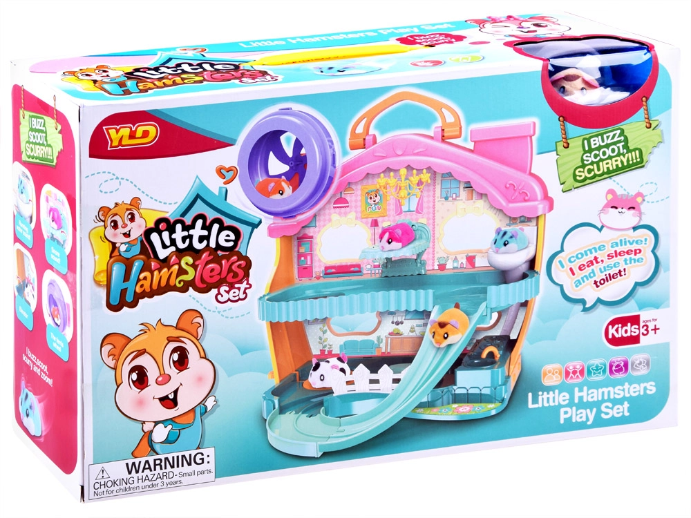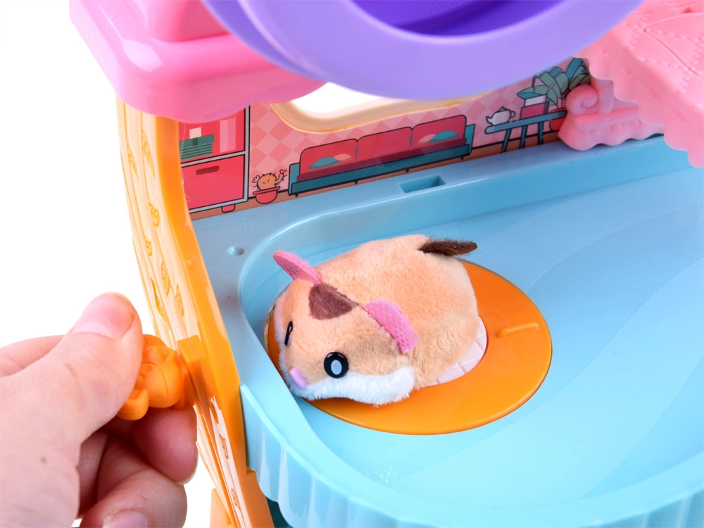 Šarmants komplekts ar interaktīvu mīksto kāmīti un krāsainu mājiņu, kas pilna ar izklaidēm, iepriecinās ikvienu bērnu. Tajā atradīsiet skriešanas riteni, gultiņu ar žāvas un krākšanas skaņām, tualeti ar skalošanu, slidkalniņu un liftu. Kāmītis ir maigs pieskārienam un gatavs spēlei uzreiz pēc izsaiņošanas.