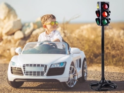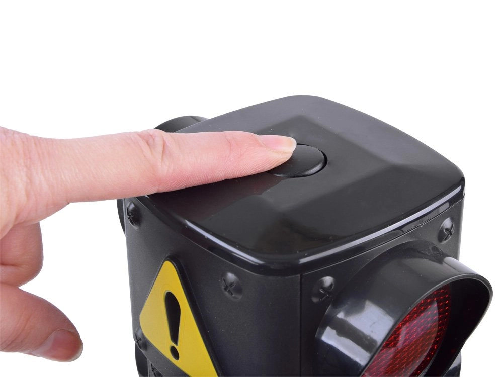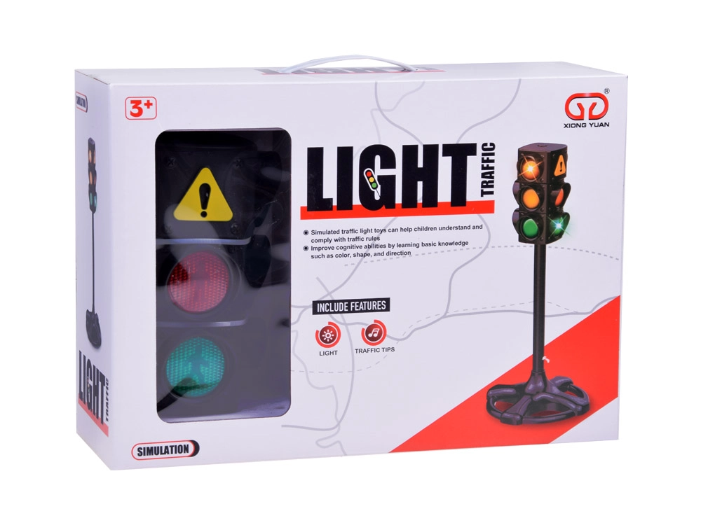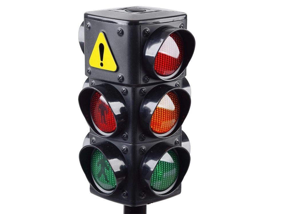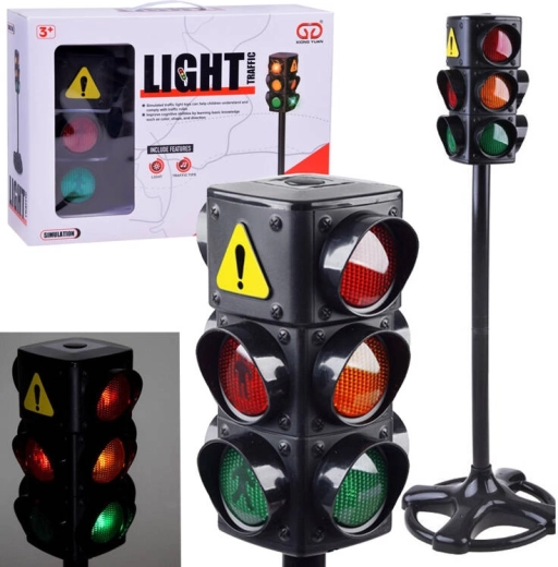 Trīs skaidri redzamas gaismas – sarkanā, oranžā un zaļā – palīdz bērniem saprast katra signāla nozīmi un trenēt drošu ielas šķērsošanu.