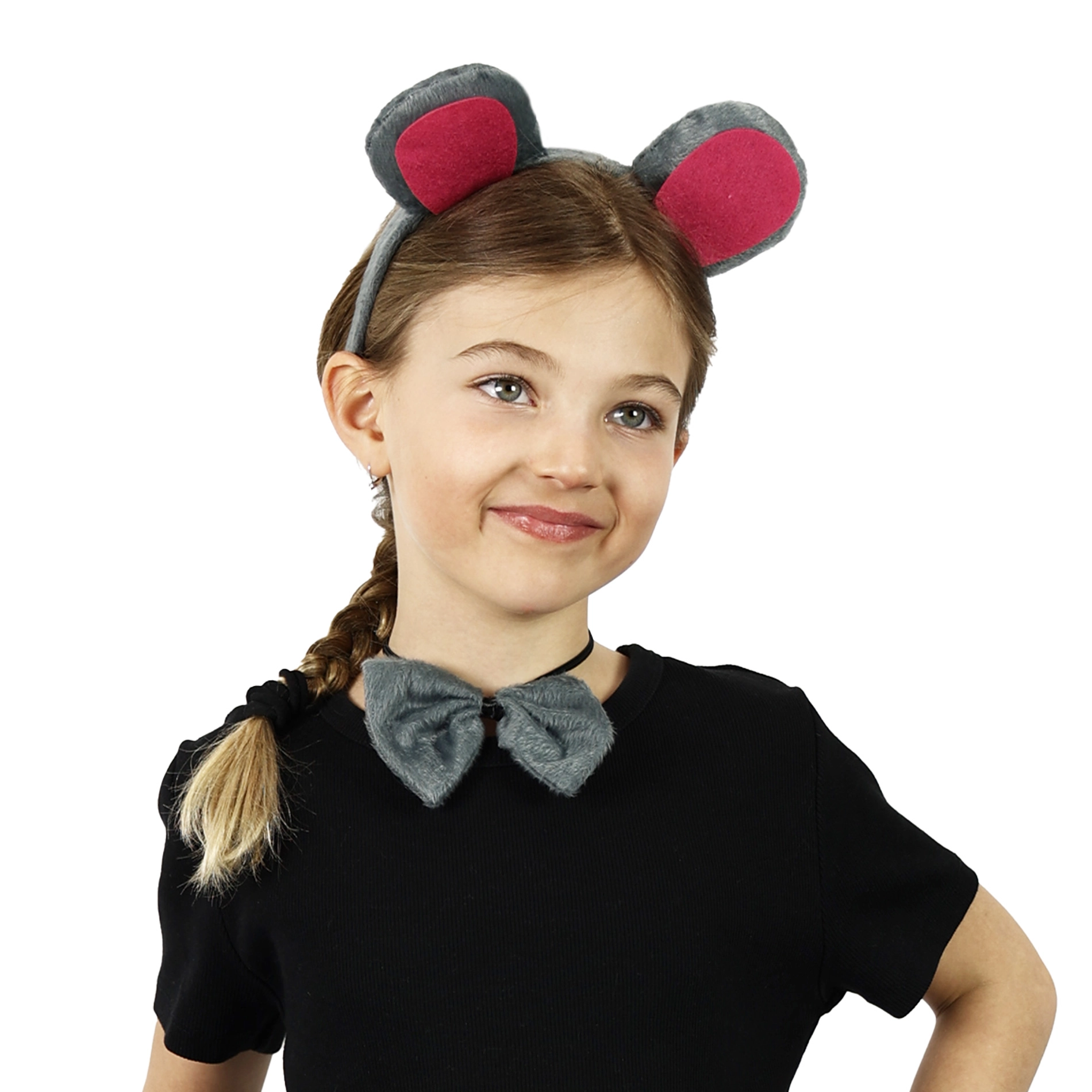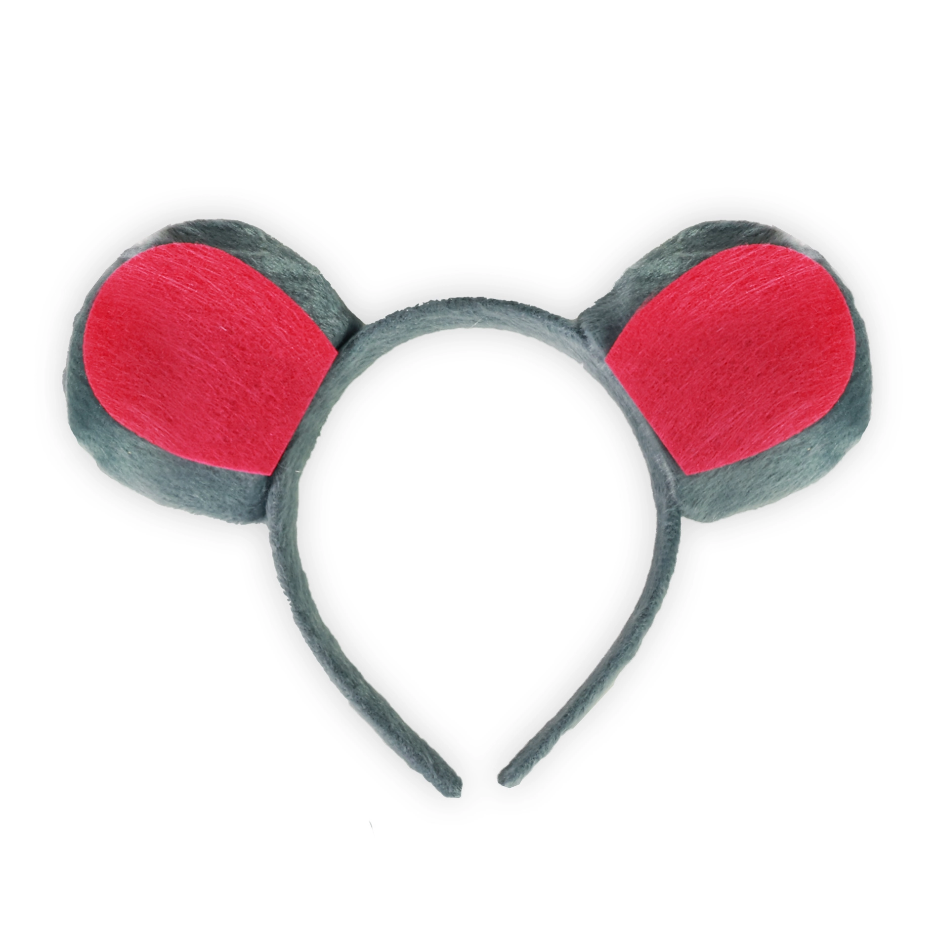 Pelēka un sarkana plīša stīpiņa ar peles ausīm nodrošina ērtu nēsāšanu jebkurā vecumā.
