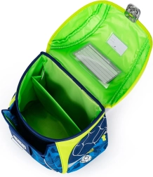 Mugursoma ir aprīkota ar atstarojošiem elementiem, iekšējo šķirotāju un daudz kabatām skolas piederumu sakārtošanai.