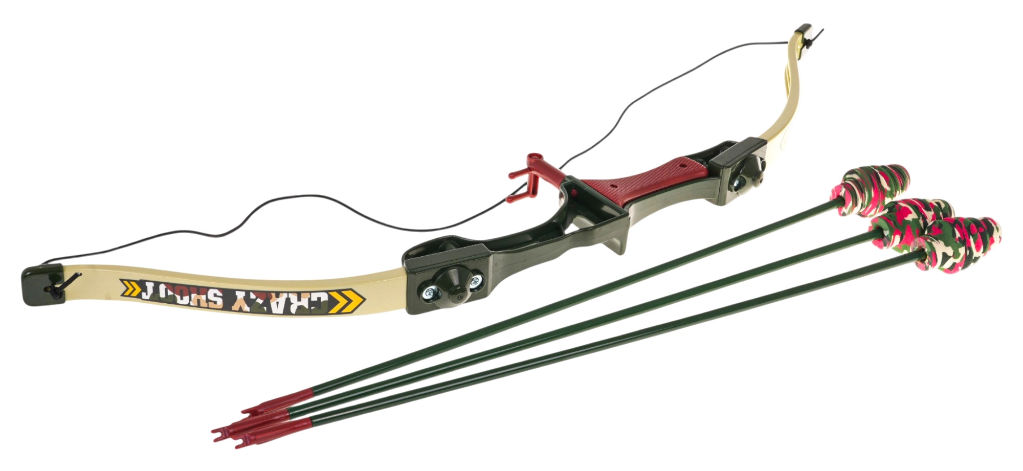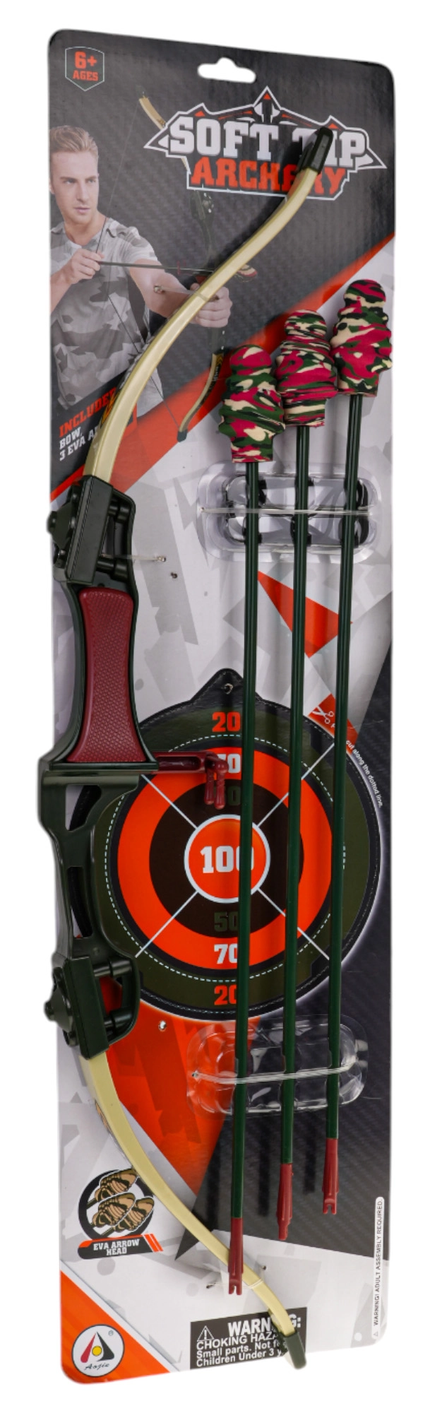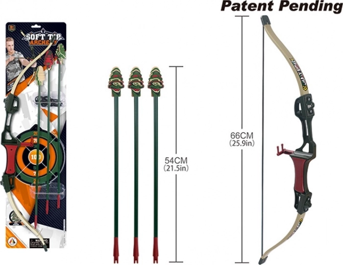 Trīs bultas ar piesūcekņiem nodrošina drošus trāpījumus uz gludām virsmām, tāpēc komplekts ir piemērots lietošanai gan telpās, gan ārā.