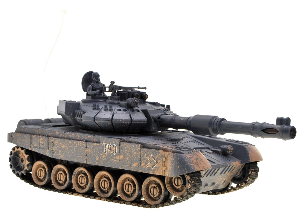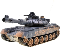 Atklājiet izklaidi ar realistisko RC tanku T-90. Pateicoties rotējošam tornim, šaušanas funkcijai un krāsainam torņa LED apgaismojumam, krēslā tas izskatās lieliski. Multifunkcionālais 27 MHz pults nodrošina pilnīgu kontroli – uz priekšu/atpakaļ, pagriešanās, apgriešanās uz vietas un torņa vadība.