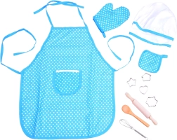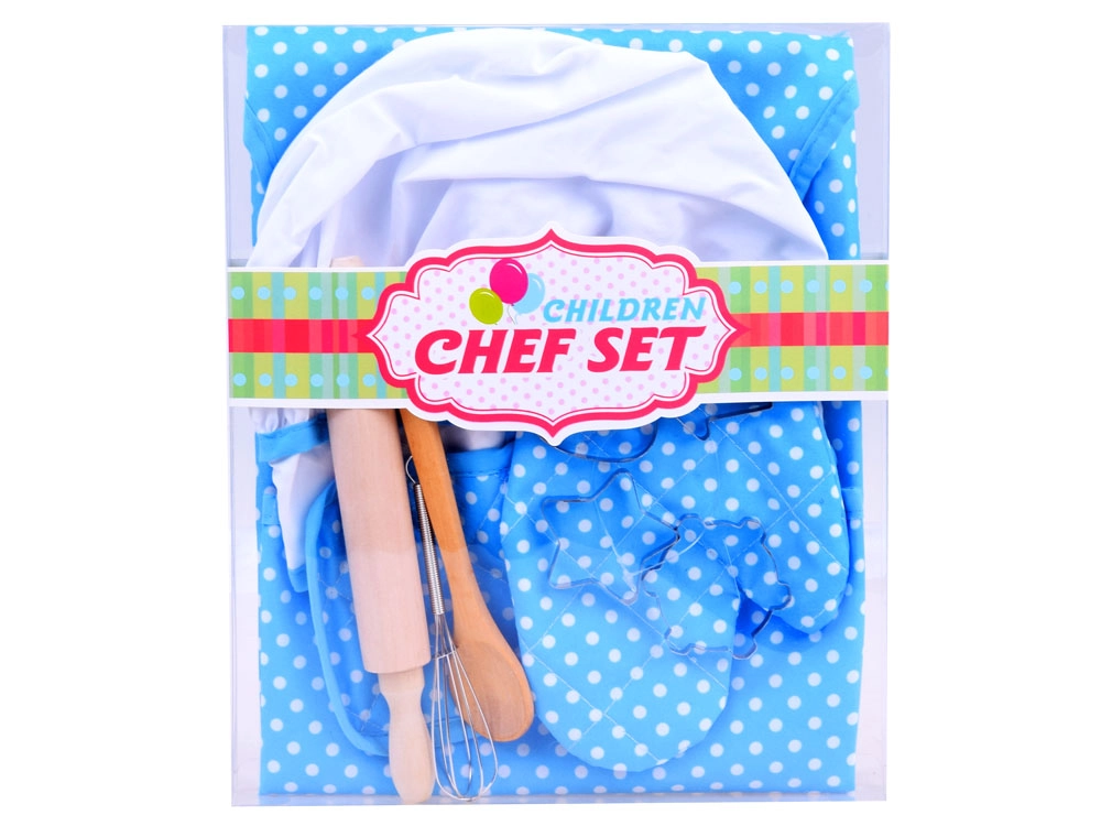 Mīlīgs bērnu pavāra komplekts mazajiem virtuves palīgiem pasargā apģērbu un motivē bērnus gatavot un cept. Komplektā ietilpst priekšauts, pavāra cepure, cimds, paliktnis un praktiski rīki – mīklas rullis, koka karote, putojamā slotiņa un metāla cepumu formiņas. Lieliski piemērots kopīgai gatavošanai, iztēles attīstīšanai un spēlei “īstos pavāros”.