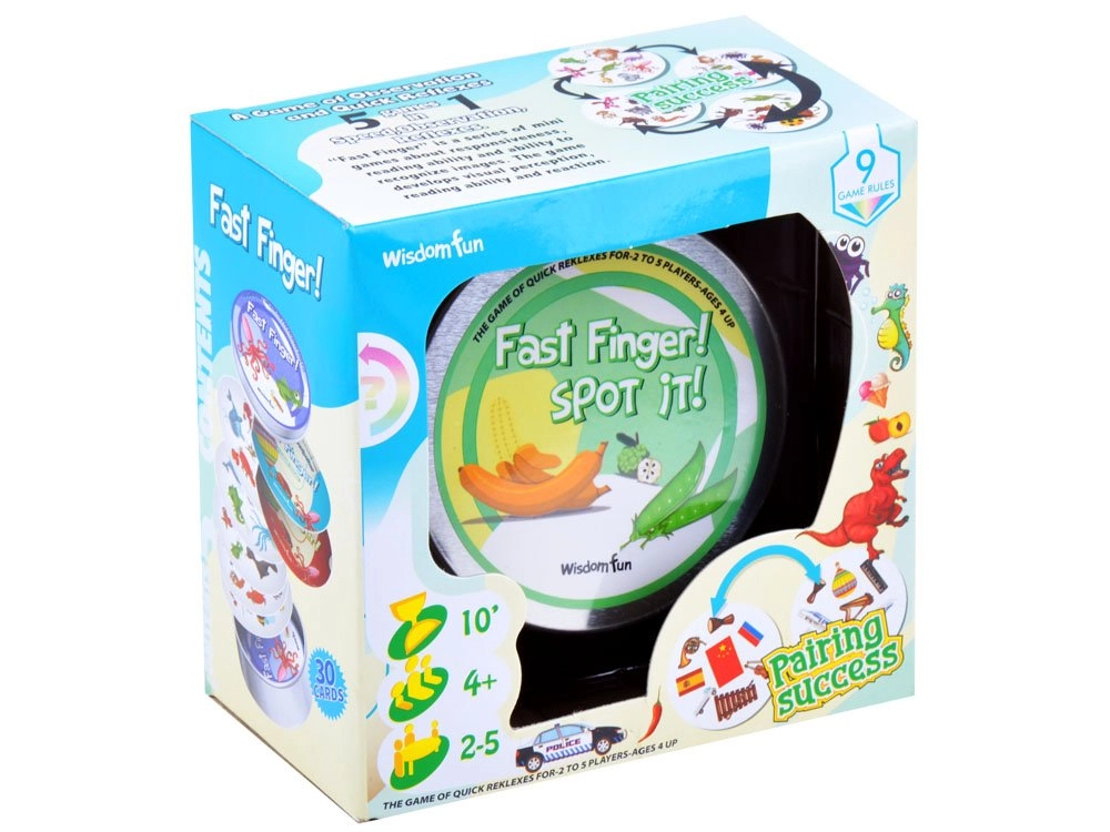 Atklājiet leģendāru ballīšu spēli, kurā izšķiroša ir ātrums un vērīga acs. Apaļās kartes ar augļiem un dārzeņiem vienmēr sakrīt tieši vienā simbolā – kurš to atrod un nosauc pirmais, iegūst pārsvaru. Pateicoties kompaktajiem izmēriem, spēli varat ņemt līdzi piknikā, vilcienā un atvaļinājumā.