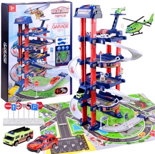 Atklājiet pilsētas satiksmes aizraujošo pasauli ar šo daudzlīmeņu stāvvietas komplektu ar 4 stāviem, elektrisko liftu un gaismas un skaņas efektiem. Komplektā ietilpst paklājiņš ar pilsētas plānu, 2 metāla mašīnītes, helikopters un ceļa zīmes, kas palīdz bērniem attīstīt iztēli un sīko motoriku. Rotaļlieta piemērota no 3 gadu vecuma un piedāvā reālistisku braukšanas un parkēšanas pieredzi.