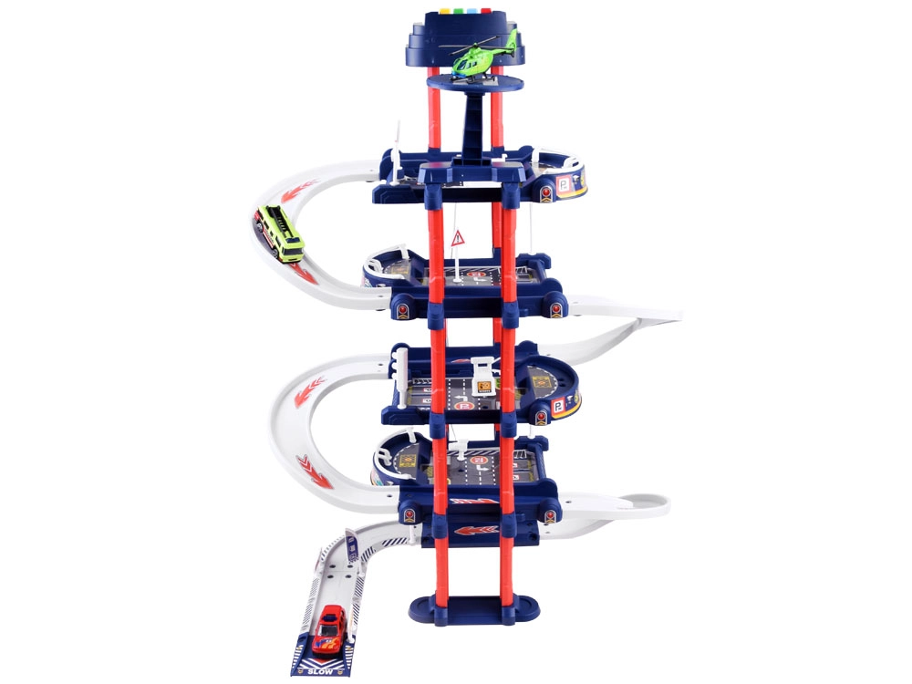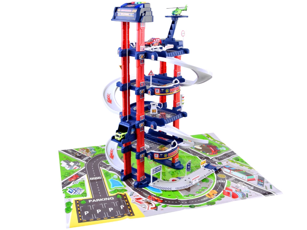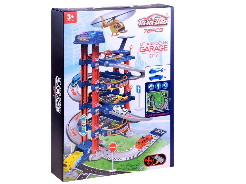 Šis izturīgais garāžas komplekts bērniem sniedz autentisku izklaidi — no uzbraukšanas pa spirāliskām rampām līdz pat automātiskai mašīnīšu pārvietošanai ar elektrisko liftu starp stāviem. Par atmosfēru rūpējas gaismas un skaņas (policijas, ugunsdzēsēju un neatliekamās palīdzības sirēnas, motora starts, signāls), kas pastiprina reālistisku spēles pieredzi.