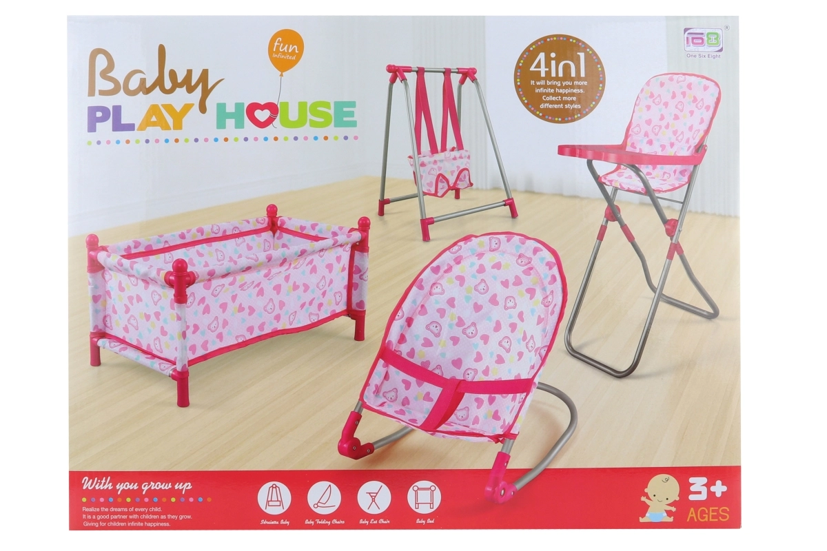 Šis daudzfunkcionālais leļļu komplekts 4-vienā ir ideāls mazajiem aprūpētājiem. Bērni var barot lelli krēsliņā, nomierināt to atpūtas krēsliņā, maigi šūpot un likt gulēt gultiņā. Pateicoties saskanīgajam dizainam un stabilajām konstrukcijām, rotaļa ir droša, aizraujoša un pilna iztēles.