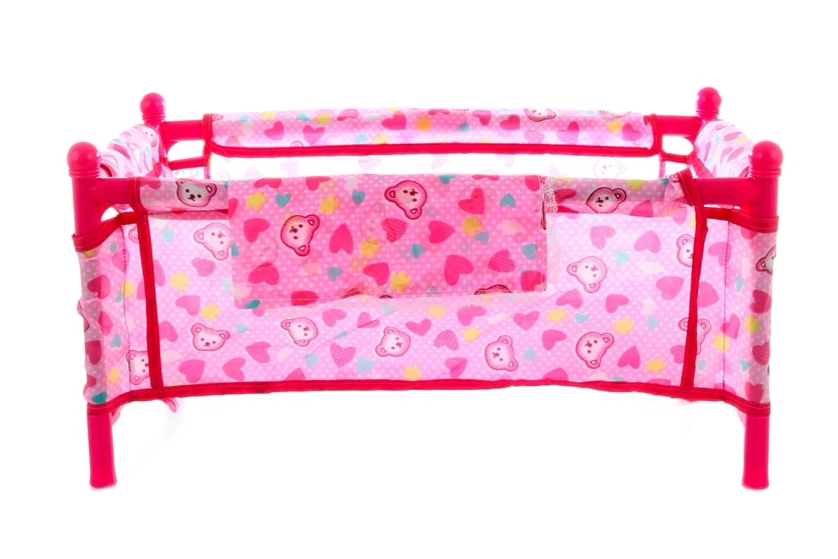Vieglā un izturīgā gultiņa ar mīlīgu apdruku ir ideāla lelles iemidzināšanai un nolikšanai pēc rotaļām.