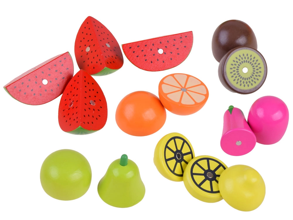 Katra augļa un dārzeņa daļa ir aprīkota ar magnētu, kas nodrošina reālistisku sadalīšanu daļās.