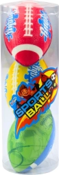 Veiciniet aktīvas rotaļas ar 3 putu regbija bumbiņu komplektu spilgtās krāsās. Mīkstās putas ir ideālas bērniem, samazina traumu risku un vienlaikus nodrošina ērtu satveršanu un mešanu. Lieliski piemērotas ģimenes āra aktivitātēm, kā arī koordinācijas un veiklības treniņiem.
