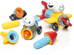 Komplekts ļauj bērniem veidot dažādus transportlīdzekļus pēc savas fantāzijas. Kombinējiet detaļas un acumirklī radiet jaunas versijas.