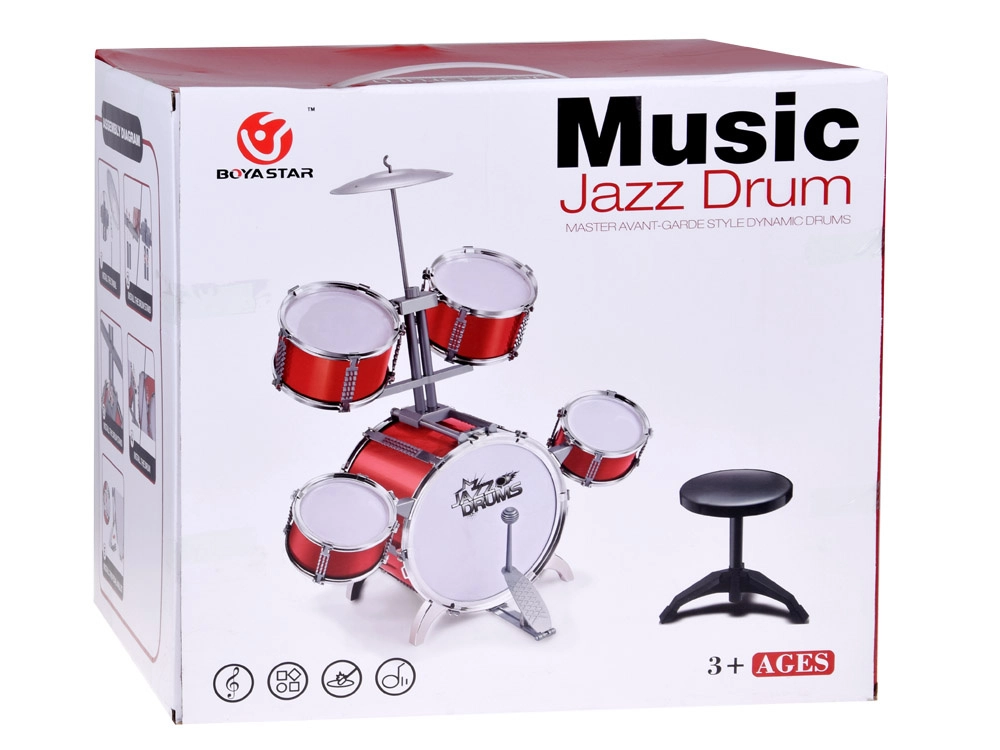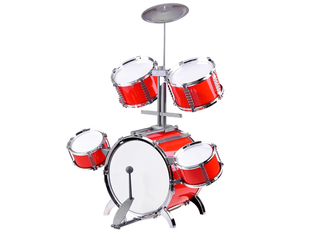 Ienes mājās ritmu ar šo lielo bērnu bungu komplektu sarkanā krāsā. Komplektā ietilpst 5 bungas, šķīvis, pedālis lielajai basbungai, 2 vālītes un stūrītis – viss, kas mazajam bundziniekam nepieciešams. Kvalitatīvs izpildījums ar realistisku šķīvja skanējumu un vieglu konstrukciju palīdz attīstīt muzikālās prasmes un ritma izjūtu.