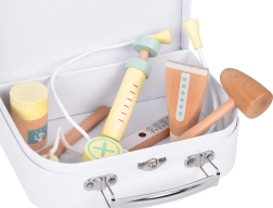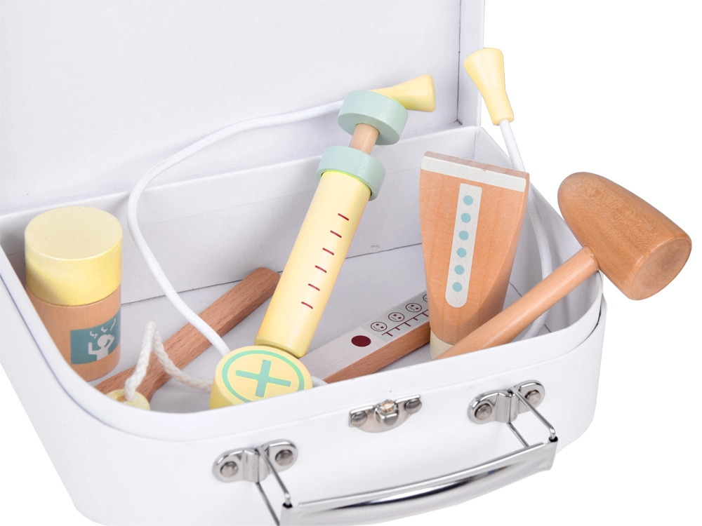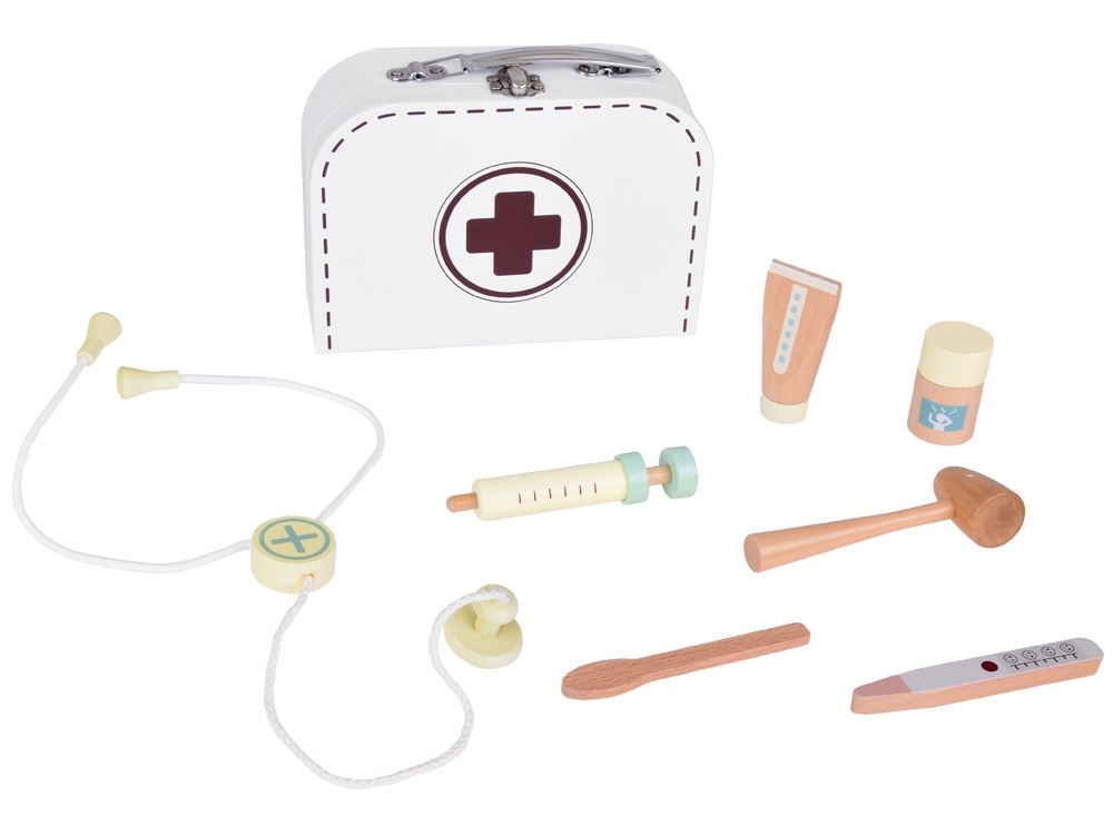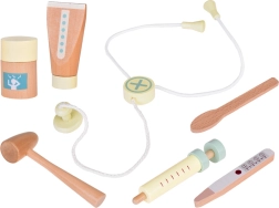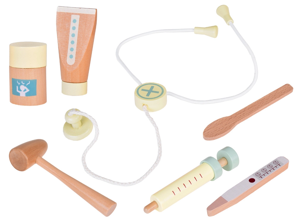 Koka ārsta komplekts ļauj bērniem iejusties ārstu lomās un rotaļīgā veidā māca par veselību.