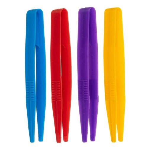 Krāsainās plastmasas pincetes māca bērniem precīzu satvērienu un koordināciju. Jautrā veidā tās stiprina pirkstus un koncentrēšanos, liekot bumbiņas uz simtkāja laukumiņiem.