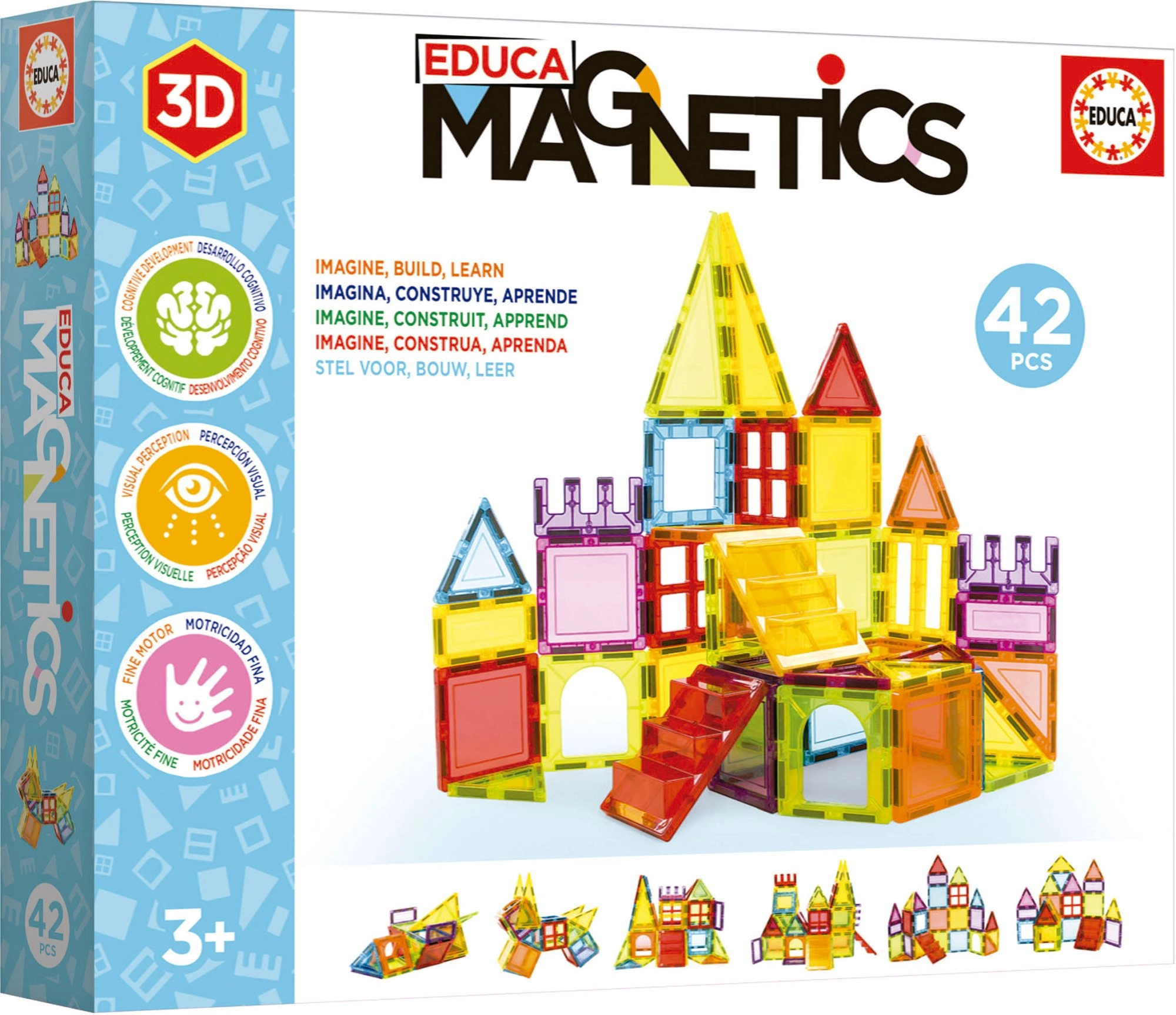 Magnētiskais būvkomplekts EDUCA Magnetics sniedz bērniem aizraujošu un izglītojošu pieredzi. No 2D plastmasas daudzstūriem var viegli izveidot 3D konstrukcijas, kas attīsta iztēli un loģisko domāšanu. Pateicoties 42 detaļām, komplekts ir ideāli piemērots pirmajai iepazīšanai ar magnētiskajiem komplektiem un daudzveidīgu modeļu radīšanai.