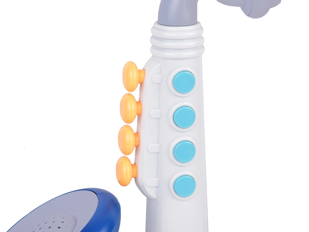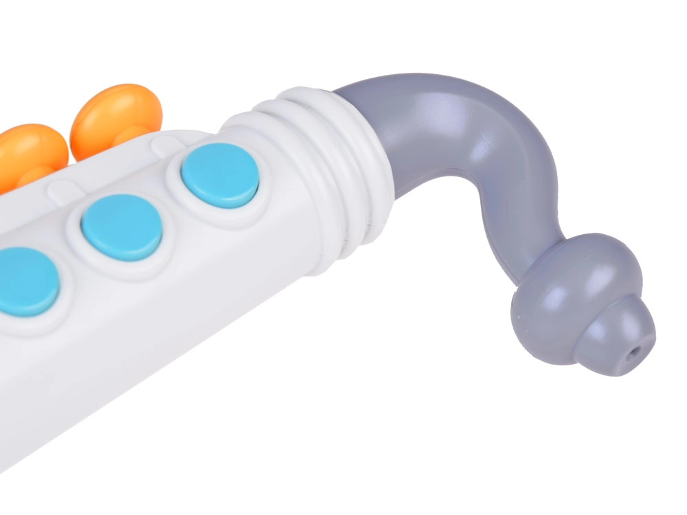 Piedāvājam interaktīvu bērnu mūzikas saksafonu, kas ir ideāls ne tikai izklaidei, bet arī izglītošanai. Šis baltais saksafons ir aprīkots ar krāsainām pogām, kuras, nospiežot, atskaņo dažādas skaņas un iepriekš ierakstītas melodijas. Skaņas efektus papildina gaismas efekti, kas rada brīnišķīgu vizuālo atmosfēru mājas koncertiem. Bērni var apgūt pamatritmu un harmoniju, vienlaikus attīstot savu radošumu un kognitīvās spējas.