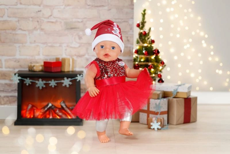 Komplekts paredzēts BABY BORN lellēm 43 cm un, pateicoties vieglai uzvilkšanai, veicina bērnu patstāvību. Lieliski piemērots svētku stāstu veidošanai, bildēm pie eglītes un ikdienas rotaļām.
