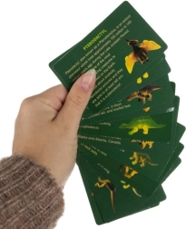 Mācieties par dažādām dinozauru sugām ar kartītēm, kurās ir šo aizvēsturisko radību nosaukumi un attēli.