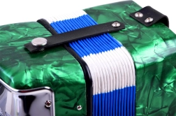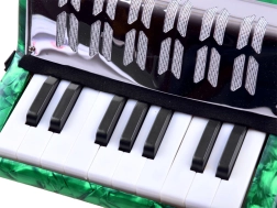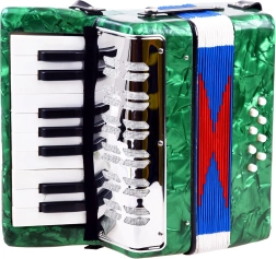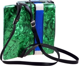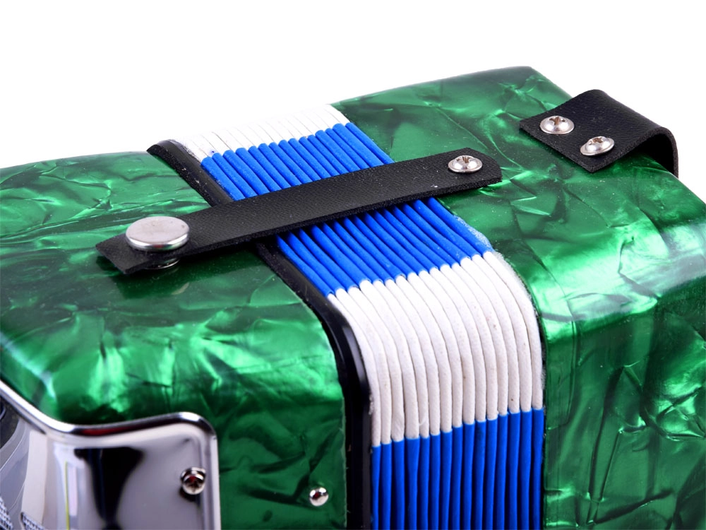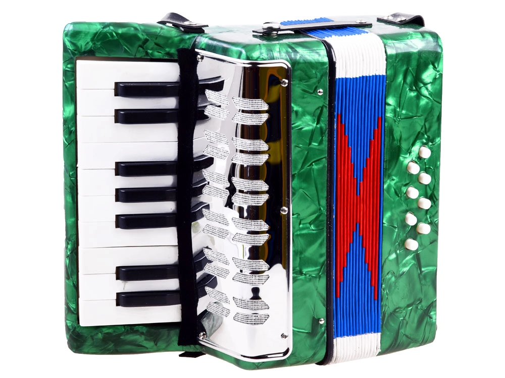 Atklājiet mūzikas prieku ar šo lielo bērnu akordeonu zaļā krāsā. Tas izskatās kā īsts instruments, attīsta sīko motoriku, mūzikas izjūtu un māca atšķirt toņus. Pateicoties klaviatūrai un basu pogām, ērtam siksnas stiprinājumam un plēšas fiksējošai sprādzei, spēlēšana ir vienkārša un droša – ideāli piemērota mazajiem iesācējiem mūziķiem.