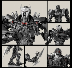 Iespaidīgs izmērs un precīzs mehāniskais dalījums uzticīgi ataino Scourge izskatu no filmas Transformers: Rise of the Beasts.