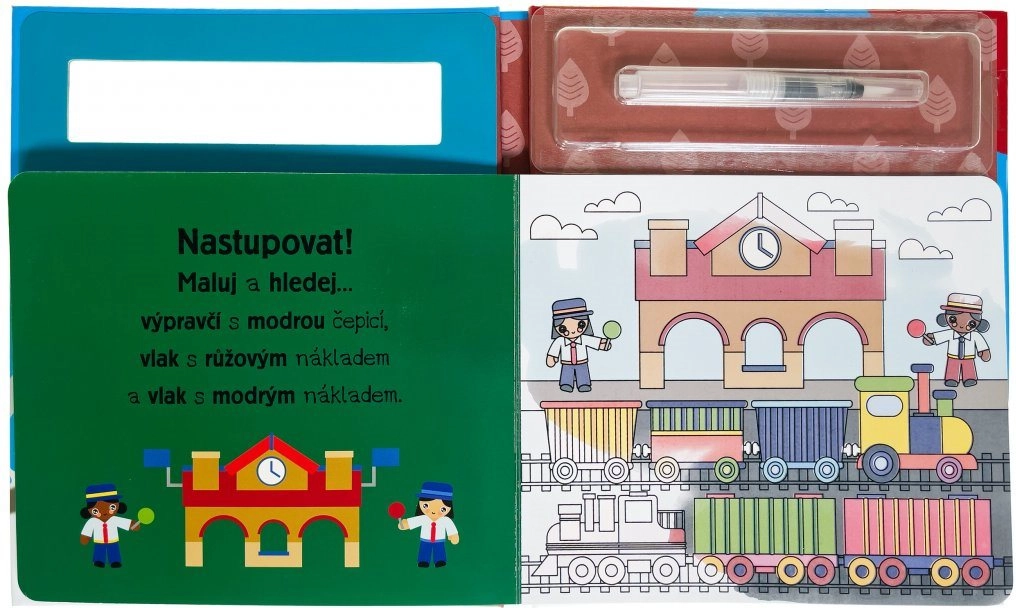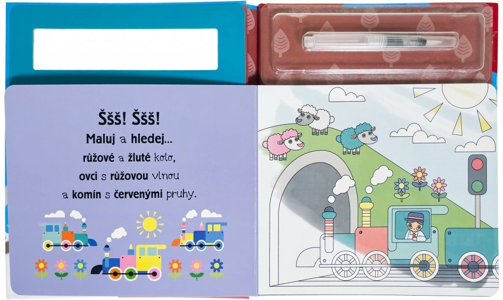 Izbaudiet krāsošanu bez nekārtības ar atkārtoti lietojamām krāsojamām lapām. Nepieciešams tikai ūdens, ota, un jūsu bērns atklās paslēptos vilcienu un jaudīgu mašīnu attēlus.