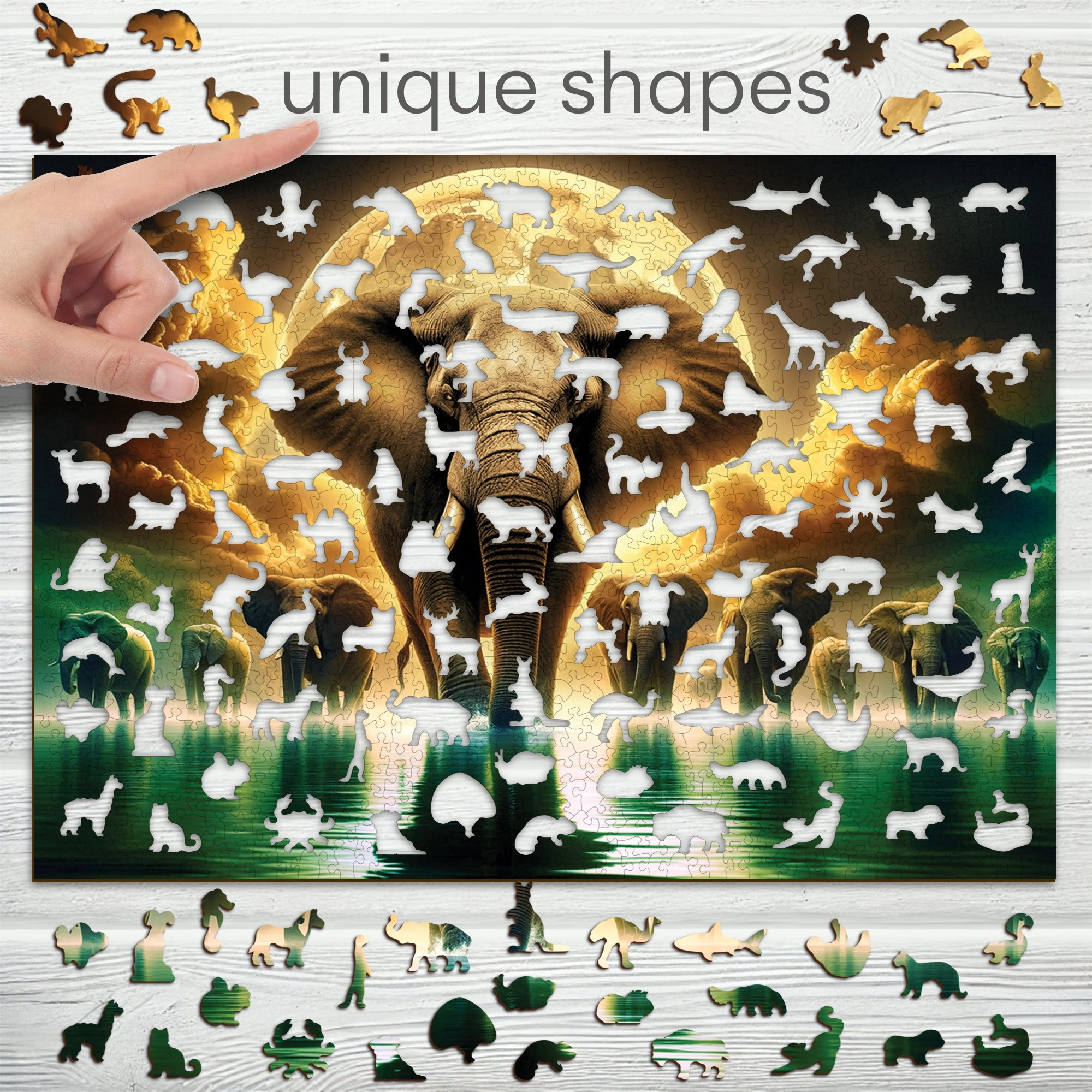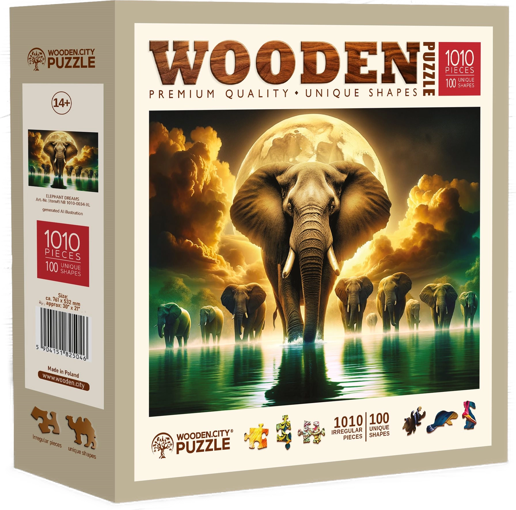 Ienāciet fantāzijas pasaulē ar WOODEN CITY koka puzli – Ziloņu sapņi. Pateicoties precīzai lāzergriešanai, detaļām ir gludas malas bez skabargām, bet atsevišķi dzīvnieku formas gabali piešķir motīvam smalkas nianses. Šīs īpašās detaļas var pat stāvēt pašas kā nelielas figūriņas, padarot puzli ne tikai par izklaidi, bet arī par kolekcionējamu priekšmetu.