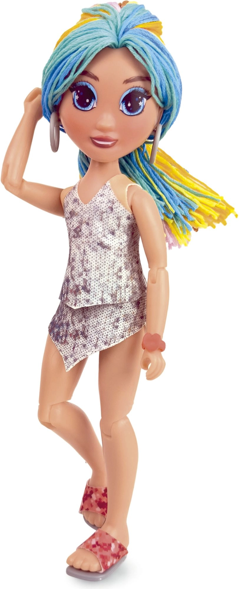 - Saliekama lelle, audums ar iepriekš iespiestiem izgriezumiem 61 × 32 cm, modes aksesuāri, kokvilnas diegi matiem, apģērbu perforators, piederumi, attēlu instrukcija