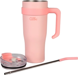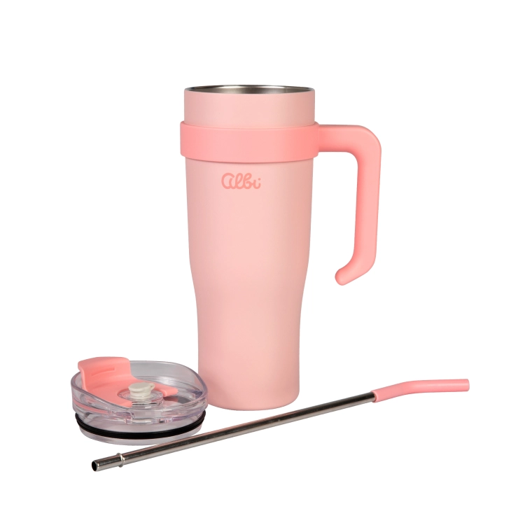 - Lietošanas komforts: pretbuksēšanas pārklājums, praktisks rokturis, nerūsējoša tērauda salmiņš ar silikonu.