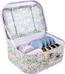 Komplektā ir arī izturīgs čemodāniņš, kurā bērni visu ērti saliek un ņem līdzi ciemos, piknikā vai savā istabā. Lieliska dāvana mazajām saimniecēm un saimniekiem.