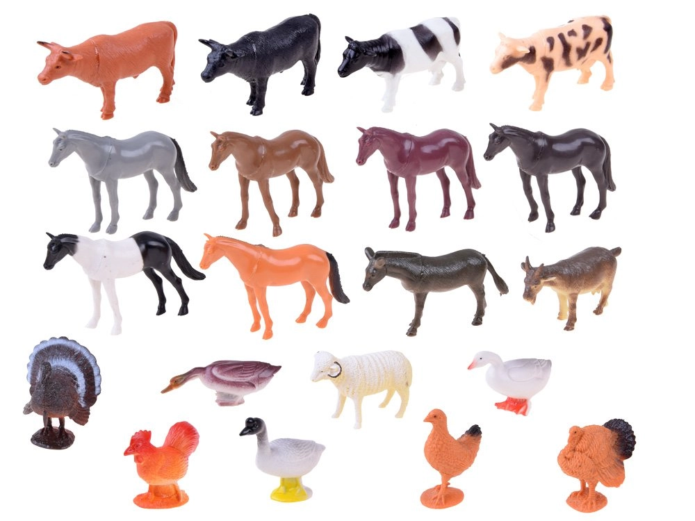 - Pilns komplekts: zirgi, govis, cūkas, ēzeļi, mājputni un citi iecienīti saimniecības dzīvnieki.