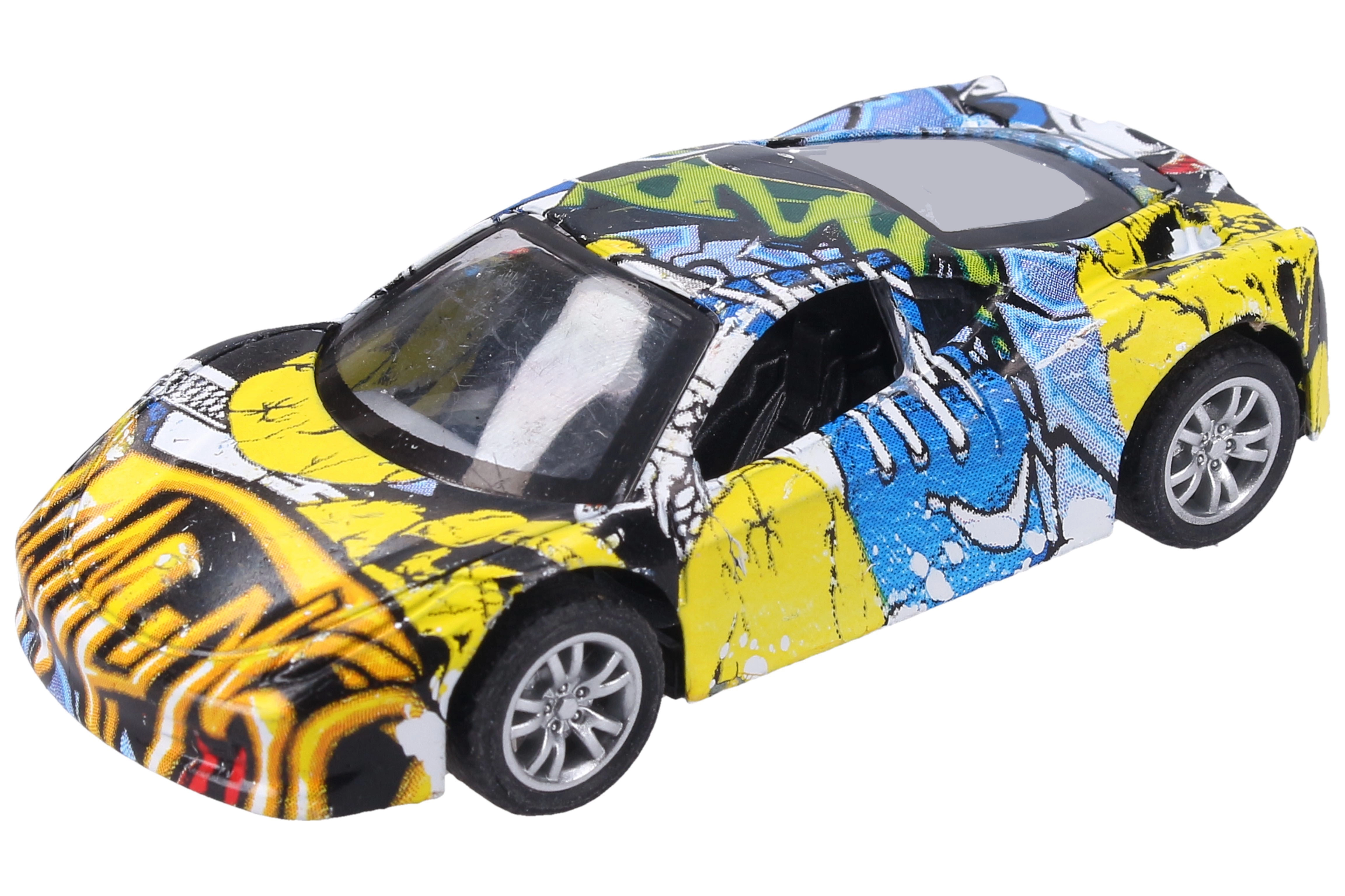 Atklājiet jautrību ar metāla auto un unikālu grafiti apdruku. Pateicoties kvalitatīvam izpildījumam un ērtajai atvilkšanas funkcijai, tas ir ideāli piemērots mājas sacīkstēm un kā stilīgs papildinājums kolekcijai.