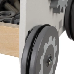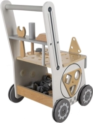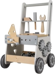 Atklājiet universālos koka 3 vienā darbnīcas ratus KRUZZEL – darba galds, glabātuve un staigulis vienā. Izgatavoti no drošiem, netoksiskiem materiāliem ar noapaļotām malām, tie veicina sīko motoriku, radošumu un koordināciju. Pateicoties stingrai konstrukcijai un klusajiem riteņiem, tie ir ideāli piemēroti ikdienas rotaļmācībai un ir lieliska dāvanu ideja bērniem no 3 gadu vecuma.