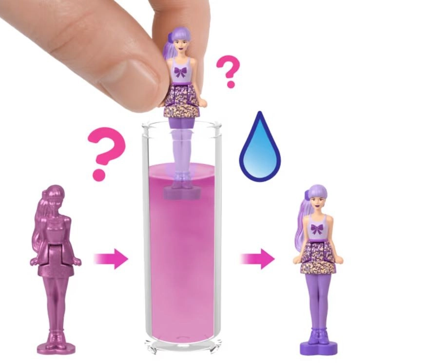 Ienirstiet Barbie pasaulē ar Mini BarbieLand Color Reveal lellēm. Šīs mazās lelles sniedz lielu izklaidi un nelielus pārsteigumus. Atveriet mazo tvertni, atklājiet mini lelli, kas pārklāta ar krāsainu kārtu, un ar ūdens palīdzību atklājiet tās izskatu!