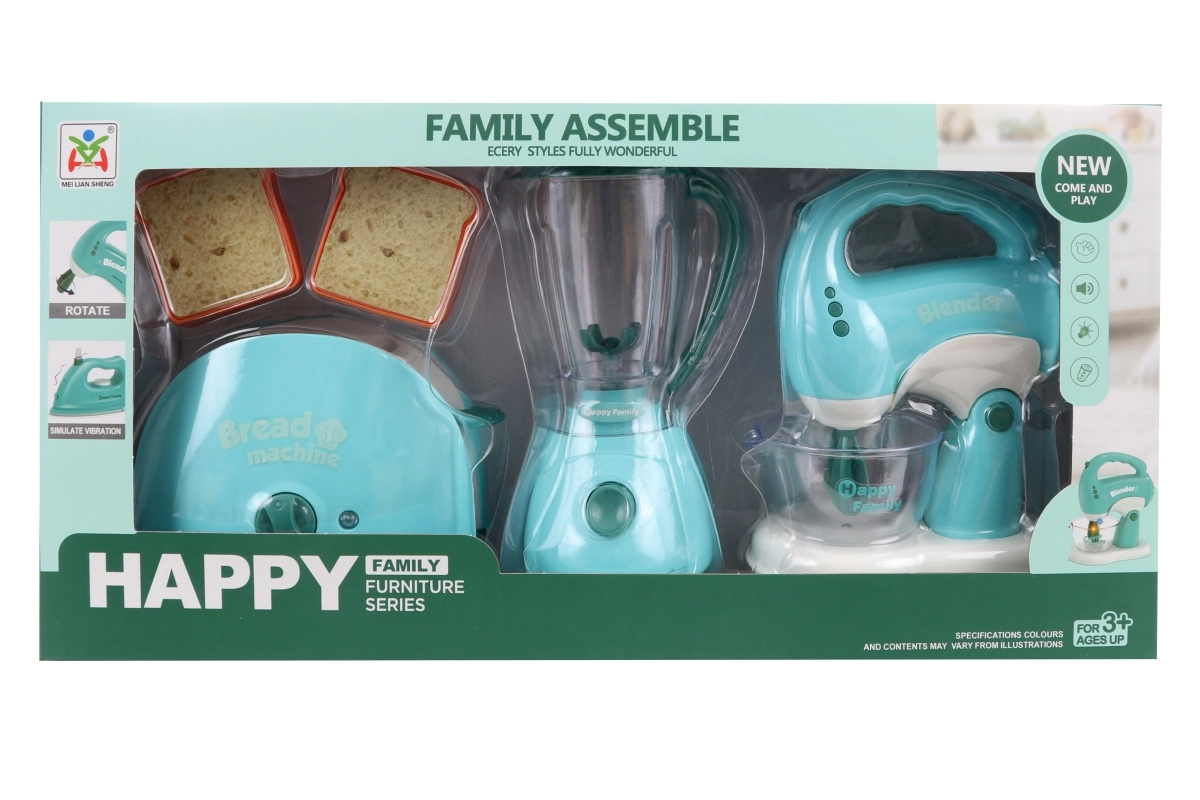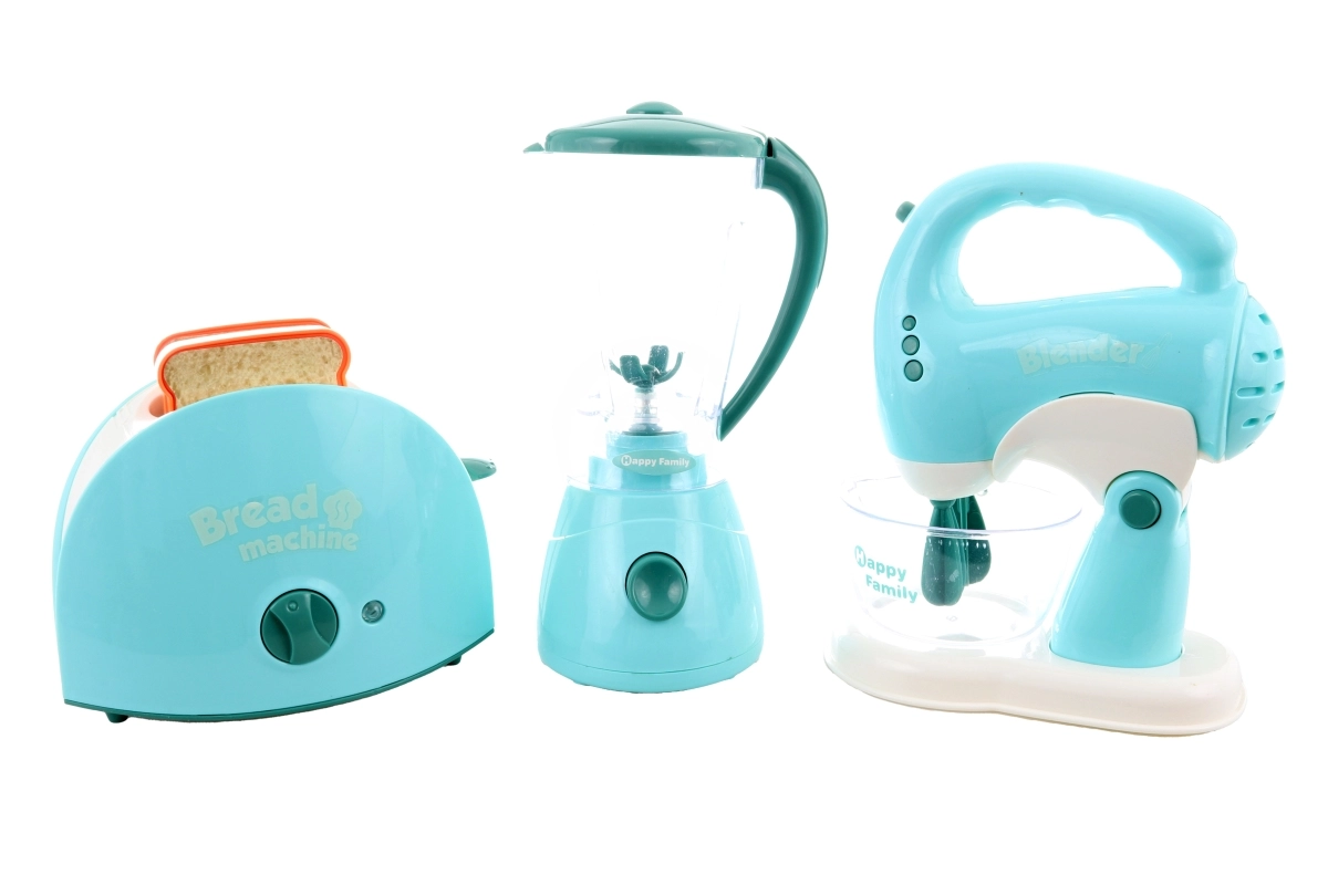 Šis realistiskais bērnu virtuves komplekts pārvērtīs jebkuru bērnistabu mazā virtuvē. Tosteris ieslēdzot spīd un izdod skaņas, mikserim ir griežama trauks ar skaņu efektiem, bet putotājs spīd, skan un griež slotiņas. Viss izgatavots no kvalitatīvas plastmasas un ir drošs bērniem no 3 gadu vecuma.