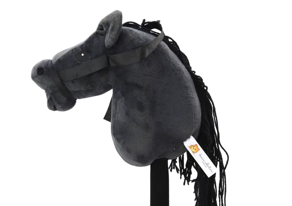 Plyša hobby horse elegantā melnā krāsā veicina aktīvu kustību, iztēli un lomu spēles. Nospiežot atzīmēto vietu uz galvas, atskan reālistiskas rikšošanas/galopa skaņas, kas bērniem ļauj sajusties kā uz īsta zirga.
