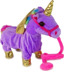 Vai vēlaties, lai jūsu bērns iepazītu, ko nozīmē rūpēties par savu mājdzīvnieku? Šis plīša vienradzis ir lieliska izvēle! Tas izgatavots ar vislielāko rūpību, violets, mīksts un skaisti dekorēts ar zelta spārniem. Tam ir interaktīvās funkcijas, kuru dēļ tas prot zviegt un atskaņot kantrī stila mūziku.