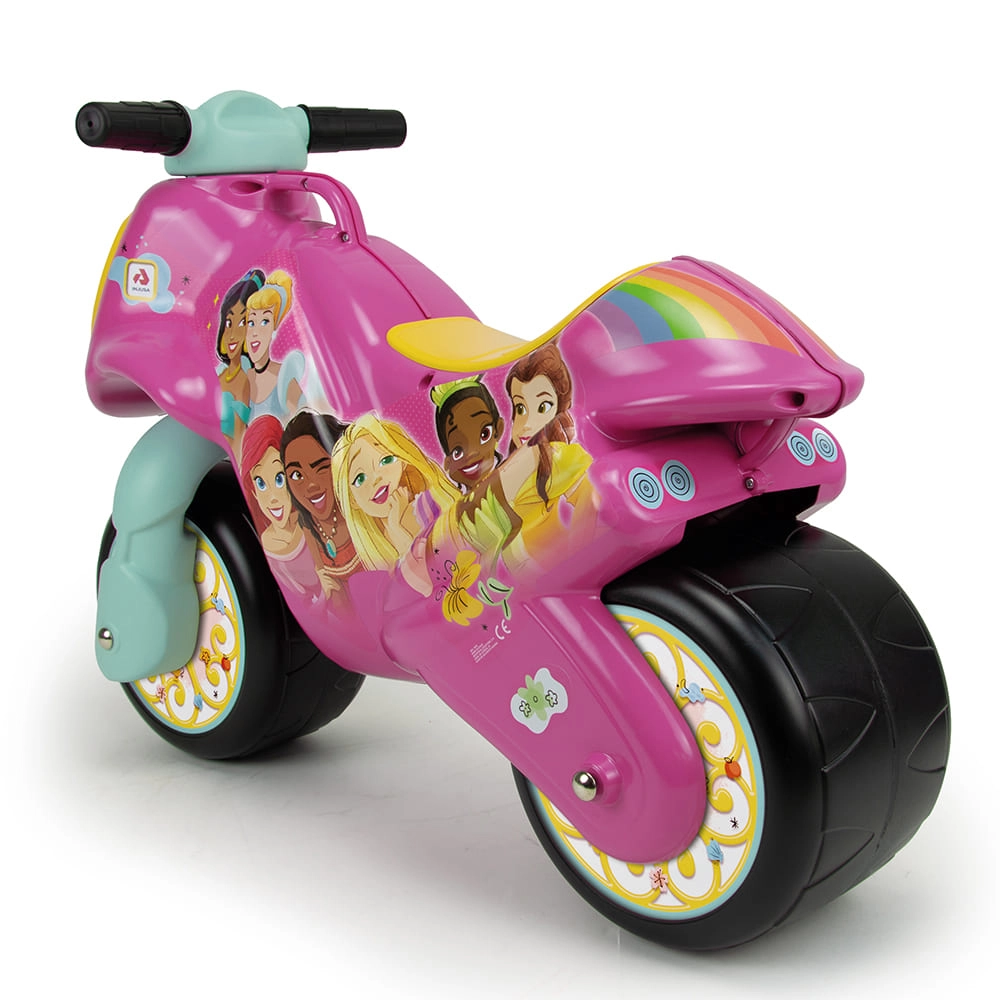 Licencētais līdzsvara motocikls DISNEY PRINCESS NEOX no Spānijas zīmola Injusa apvieno drošību, komfortu un burvīgu dizainu. Pateicoties lielajiem un platajiem riteņiem, braukšana ir stabila un droša, savukārt ergonomiskais sēdeklis veicina pareizu sēdēšanu un bērna komfortu. Grozāmais priekšējais ritenis atvieglo vadāmību un pirmo braukšanas iemaņu apguvi.