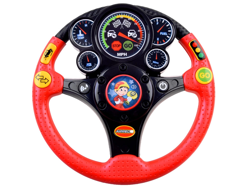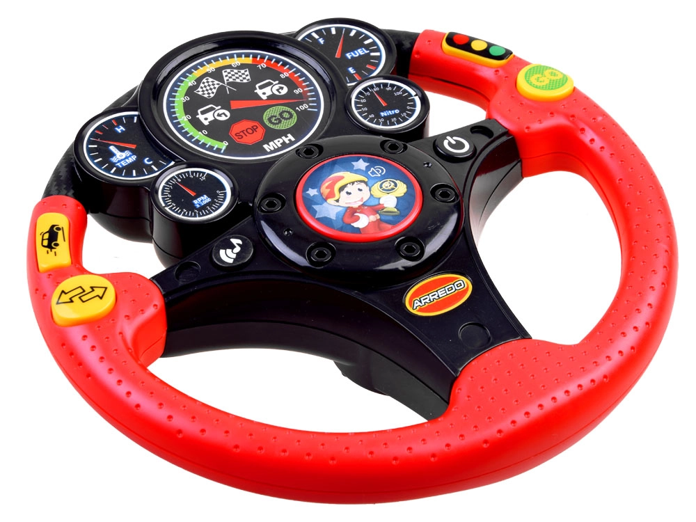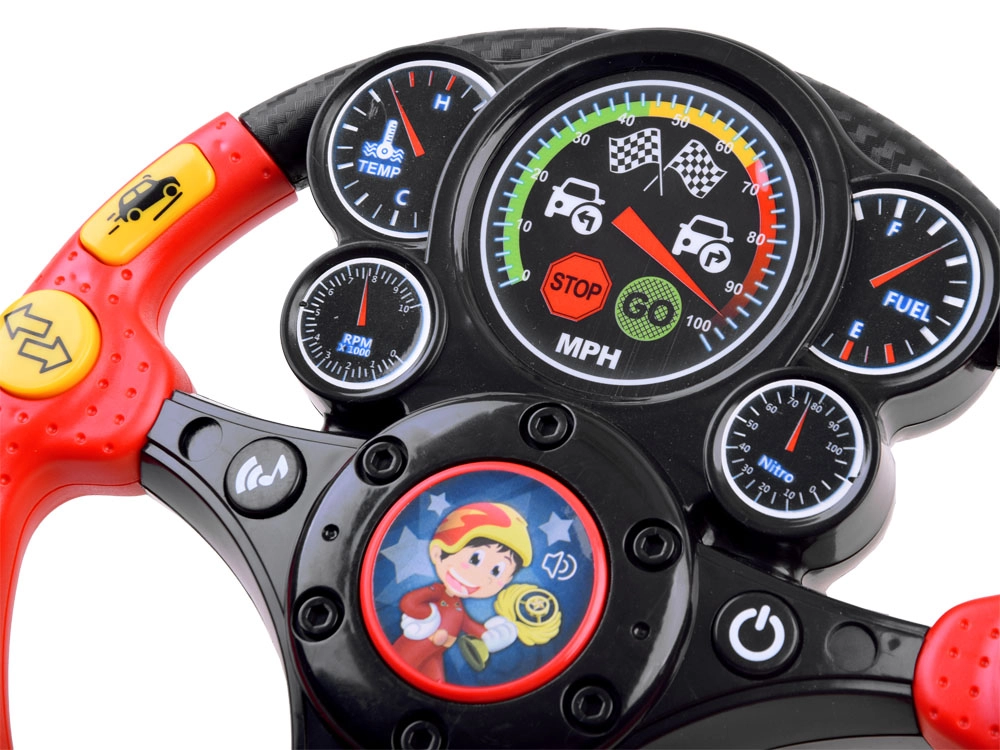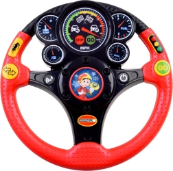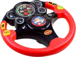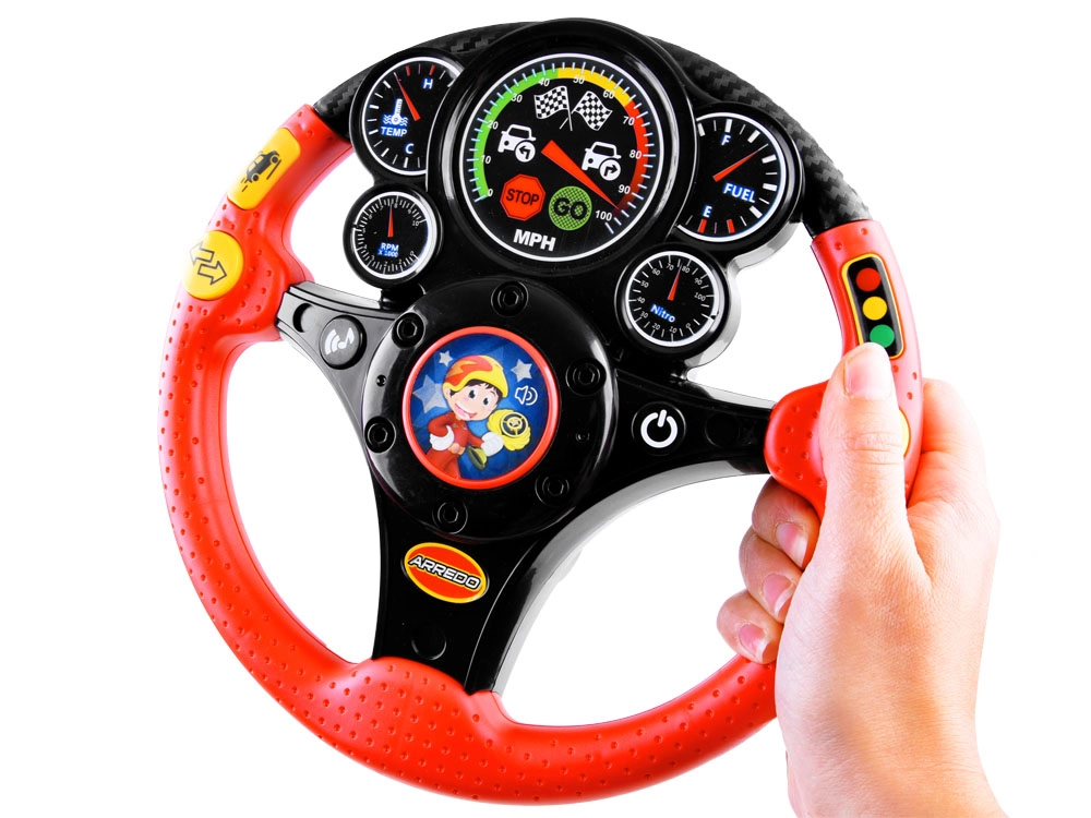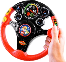 Bērnu interaktīvais stūres rats ir lielisks biedrs mājās un ceļā. Tas piedāvā autentiskus efektus, piemēram, tauri, pagrieziena rādītājus, braucošas mašīnas un bremzēšanas skaņu, kā arī apgaismotu tahometru. Pateicoties vibrācijas atgriezeniskajai saitei, bērni izjūt īstu stūrēšanu, vienlaikus rotaļīgā veidā apgūstot satiksmes situācijas.