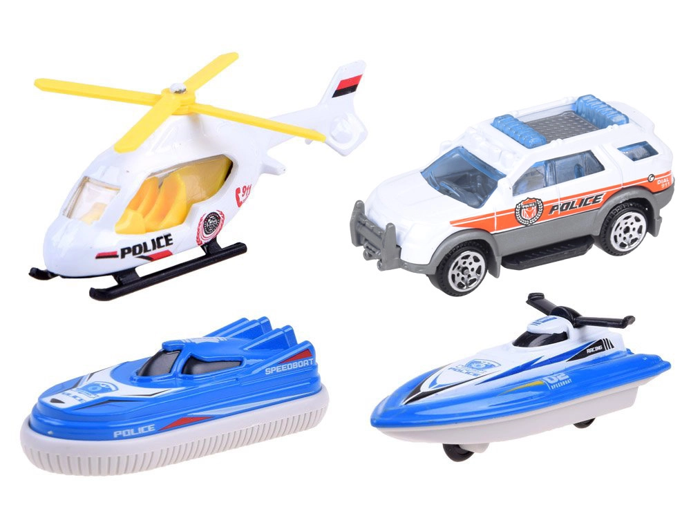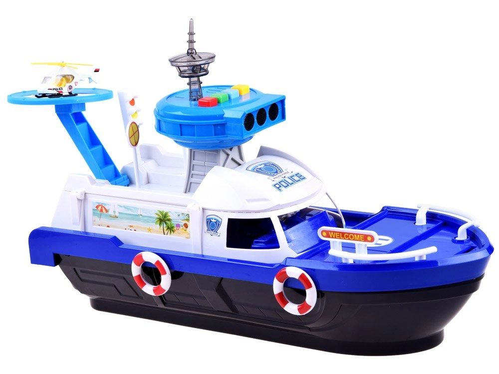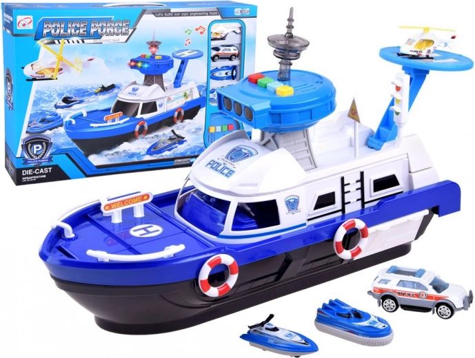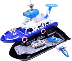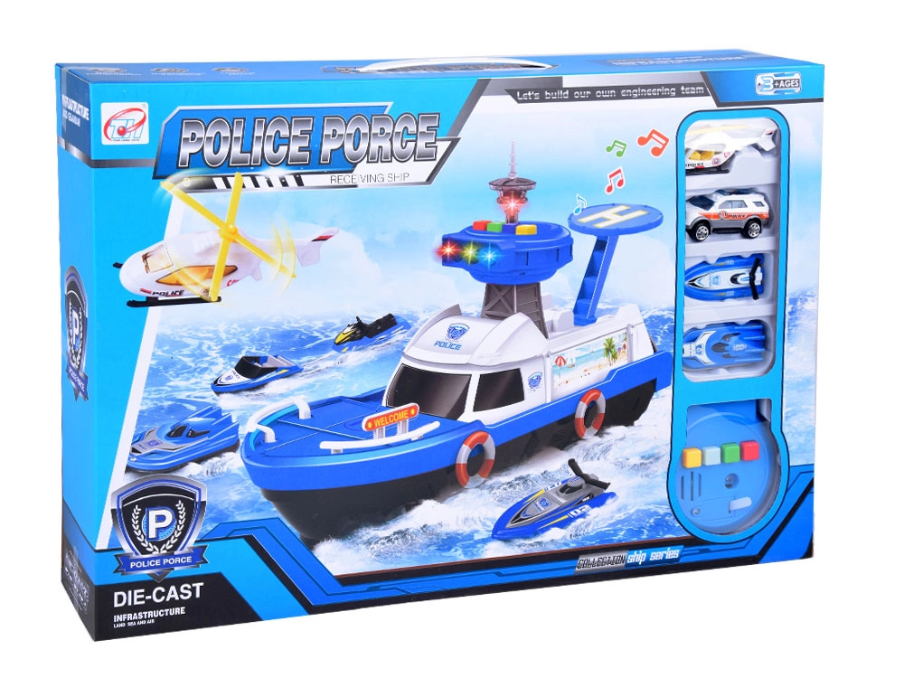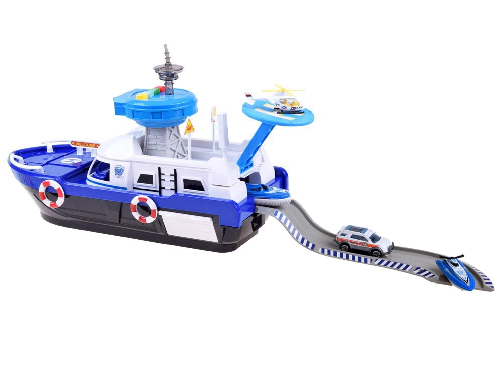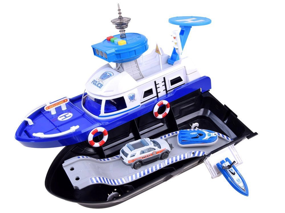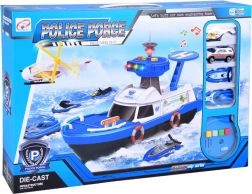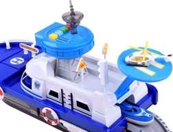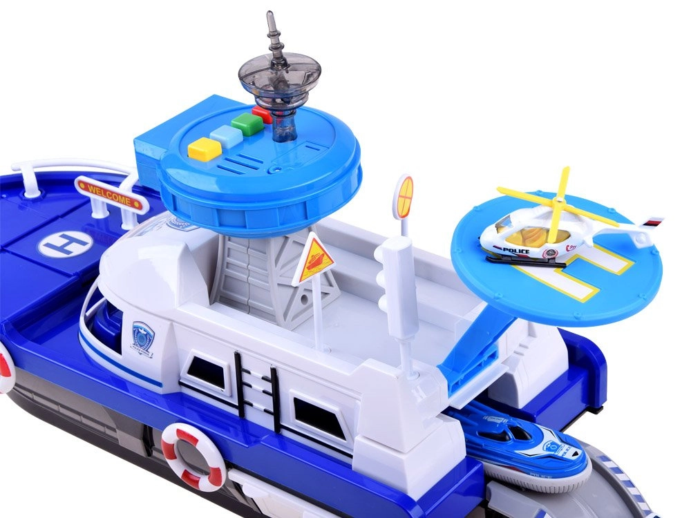 Šis detalizēti izstrādātais policijas kuģis baltzilā krāsu salikumā ir gatavs jebkurai misijai – uz ūdens, uz sauszemes un gaisā. Uz klāja atradīsiet helipadu ar helikopteru, vadības torni ar gaismas un skaņas efektiem un iekšējo glabāšanas vietu transportlīdzekļu pārvadāšanai. Atveramā kabīne ar stūri un kapteiņa figūriņu pastiprina spēles reālismu.