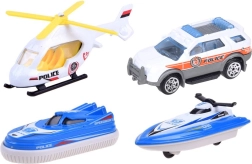 Komplektā ietilpst arī policijas furgons, skūteris un gaisa spilvena kuģis, kurus var viegli izbraukt pa rampu. Pateicoties brīvi ripojošiem riteņiem transportlīdzekļiem un rūpīgi izstrādātām detaļām, spēle ir plūstoša un aizraujoša. Komplektu papildina sliedes/ceļi transportlīdzekļiem, zīmes, enkurs un citi piederumi, lai veidotu pašiem savus stāstus.