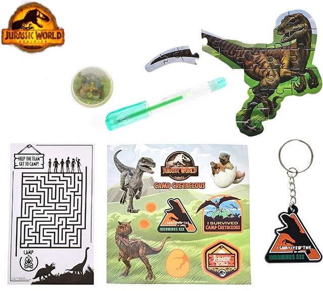 Aktivitāšu komplekts ar Juras laikmeta motīvu ir ideāls mazajiem dinozauru cienītājiem. Tas ietver dažādus izklaidējošus elementus, kas attīsta bērnu radošumu un motoriku.