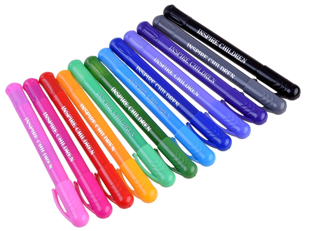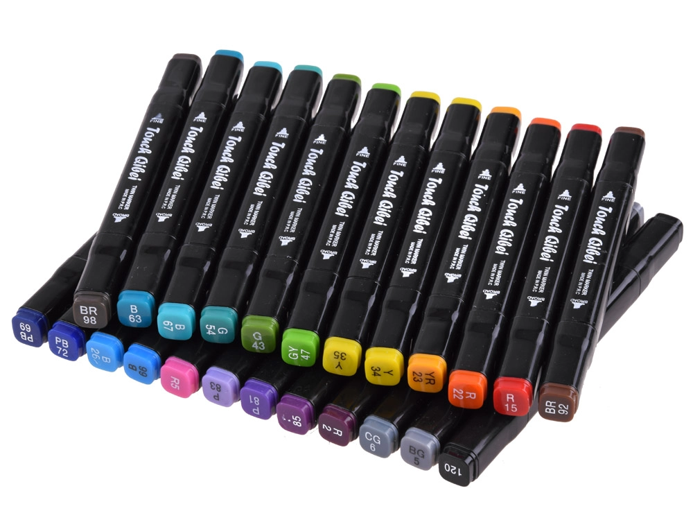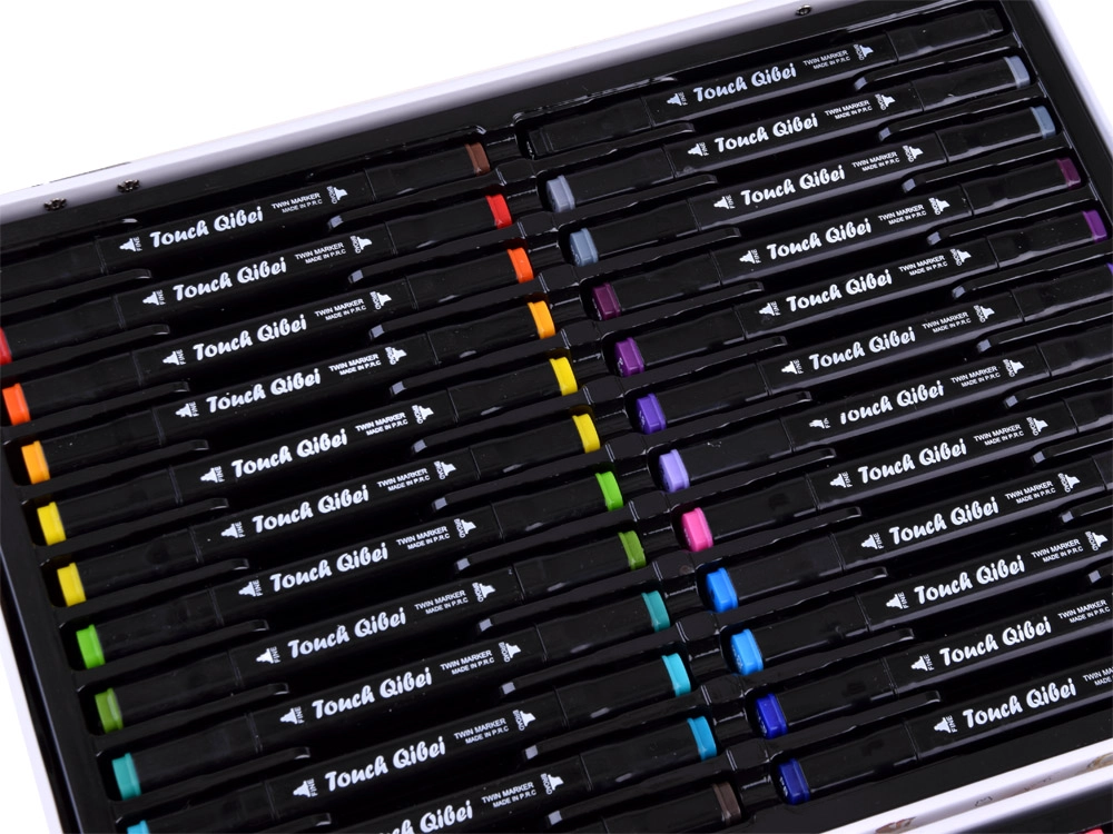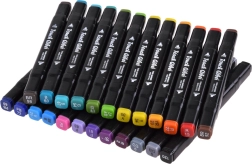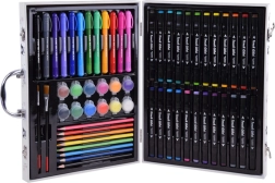 - Viss vienā: 24 biezie flomāsteri, 12 plānie marķieri, 8 krāsainie zīmuļi, 12 akvareļu krāsas, 2 otas un 1 krāsojamā grāmata.
