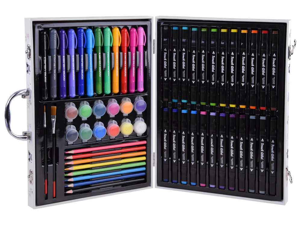 Šis bagātīgi aprīkotais komplekts mazajiem māksliniekiem piedāvā visu nepieciešamo zīmēšanai un gleznošanai. Kompakts koferītis ar jautriem dzīvnieku motīviem viegli pārnēsājams, pateicoties izturīgam rokturim, tāpēc radīšana vienmēr būs pa rokai – mājās, izbraucienos un skolā.