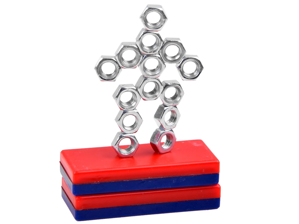Veidojiet figūriņas un formas no metāla uzgriežņiem, kas pielīp pie magnētiskām stieņveida detaļām – aizraujoša magnēta spēka un līdzsvara demonstrācija.
